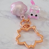 ピンクゴールドの桜型のナスカンに桜型の鈴をお付けしております。