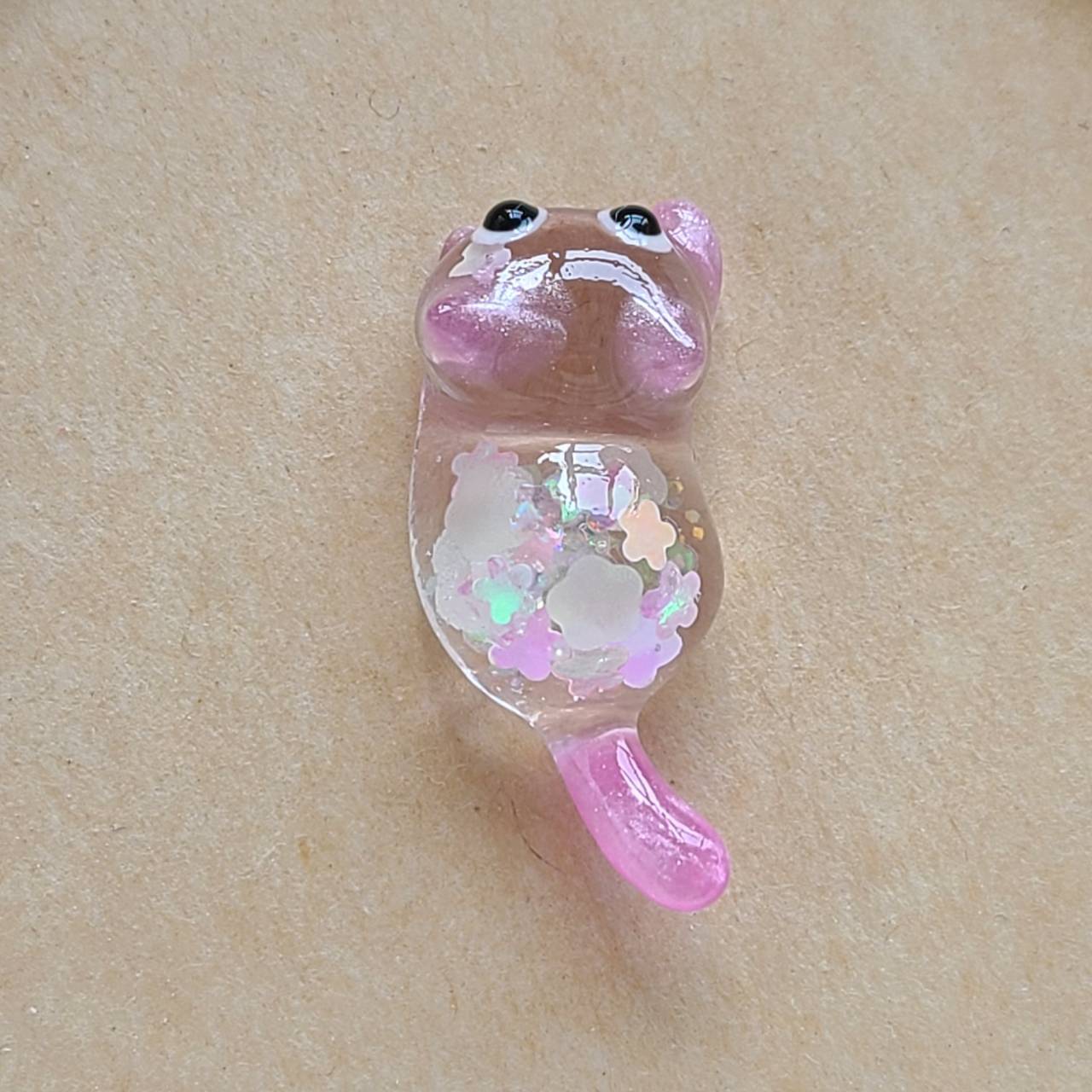 パールピンクをポイントにしたクリアなネコちゃんの中に桜吹雪を閉じ込めました。