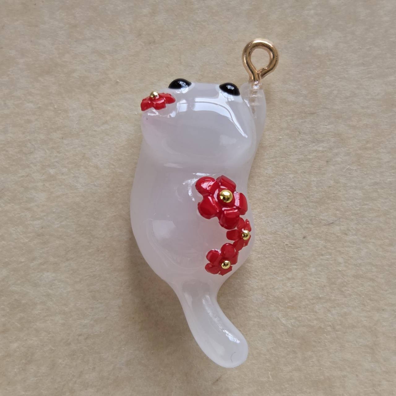 【受注販売】赤い花ざかりの白猫❉単体❉ヒートン有