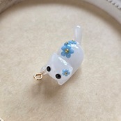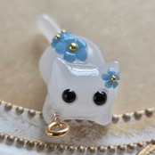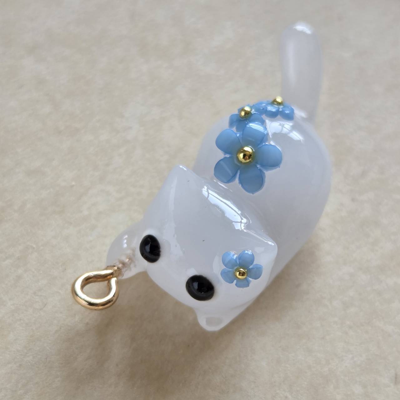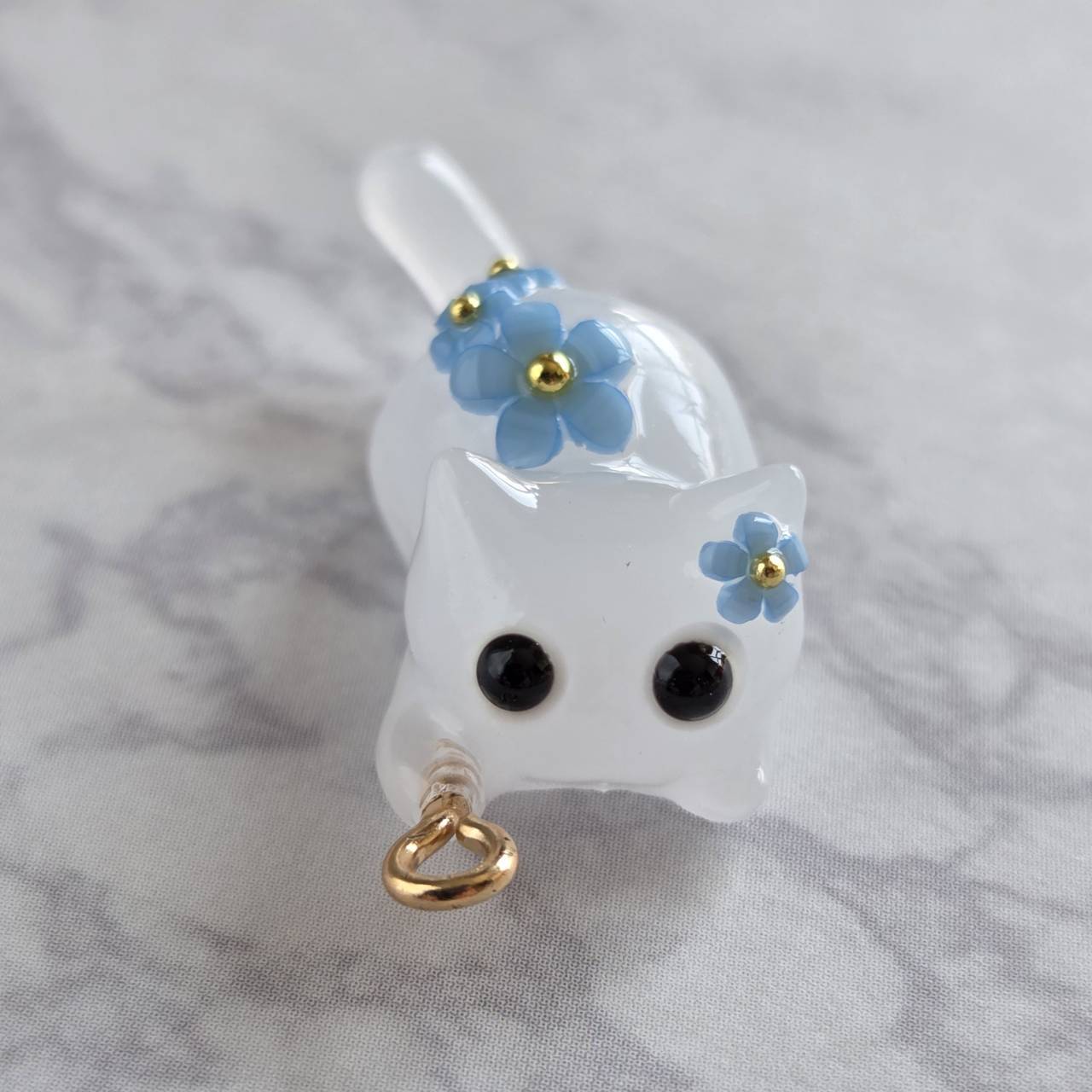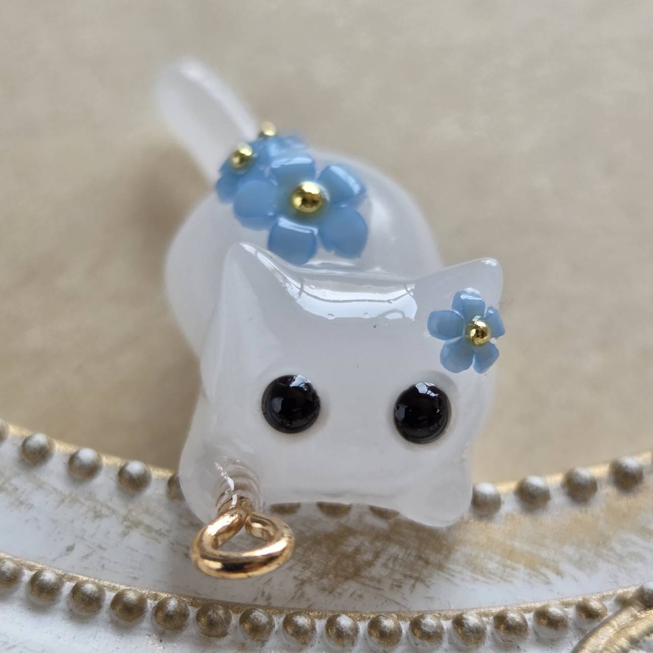 【受注販売】青い花ざかりの白猫❉単体❉ヒートン有