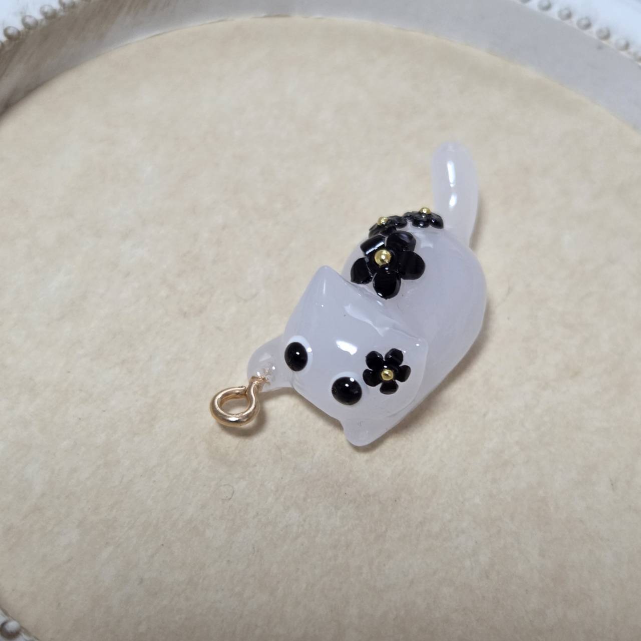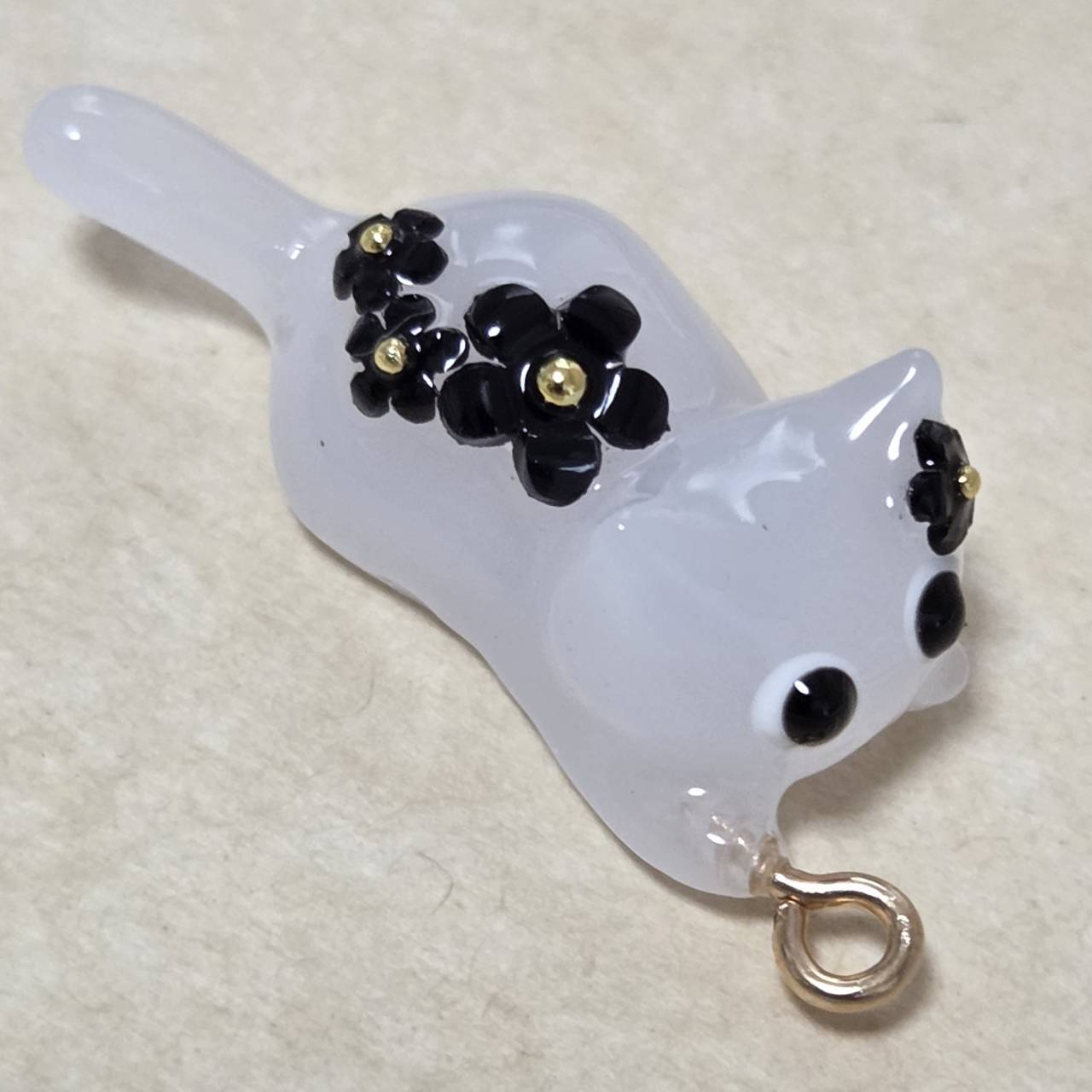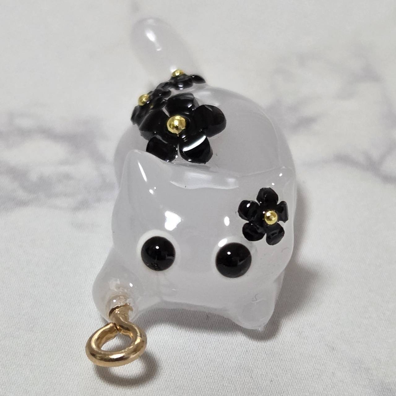 【受注販売】ブラックの花ざかりの白猫❉単体❉ヒートン有