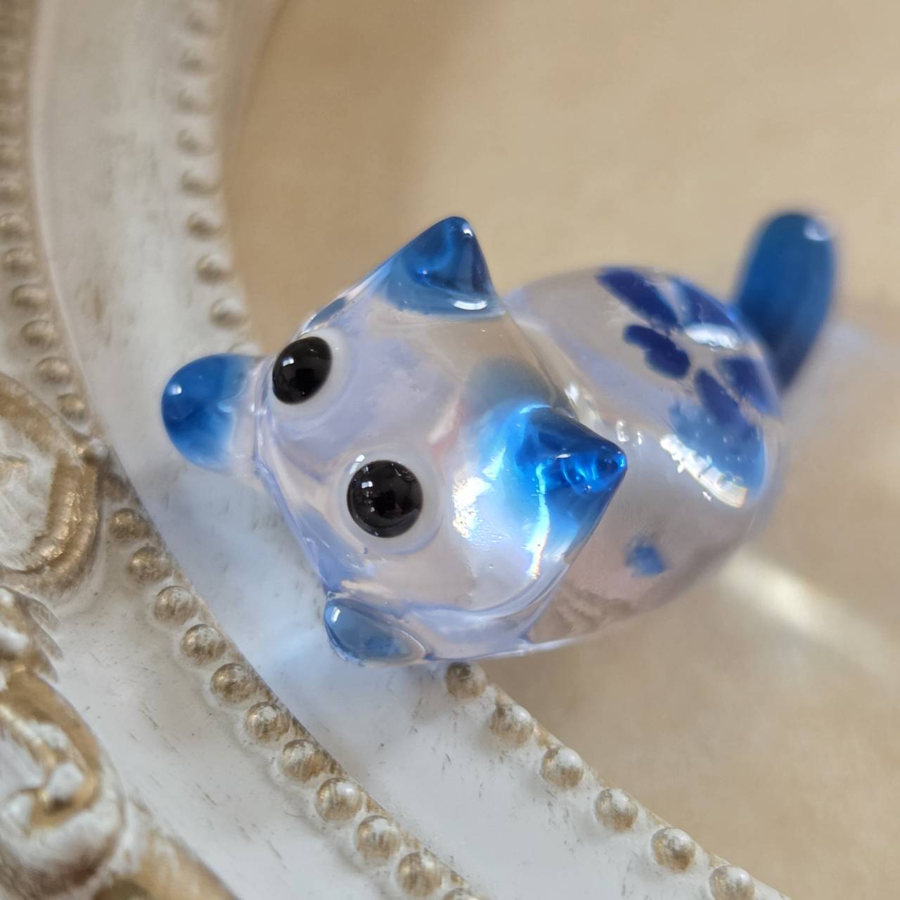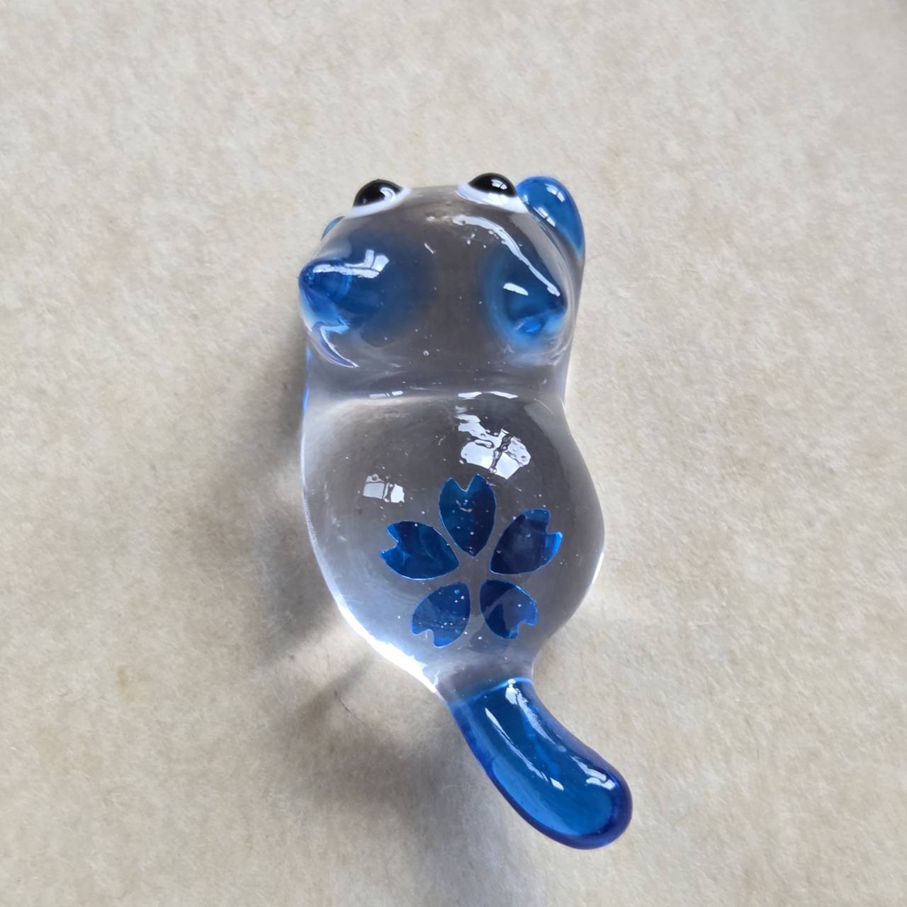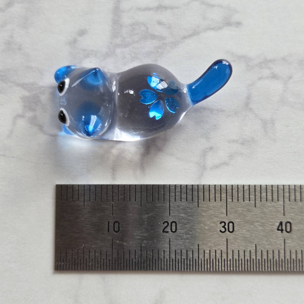 青をポイントにしたクリアなネコちゃんの中にブルーの桜の花を一輪閉じ込めました。