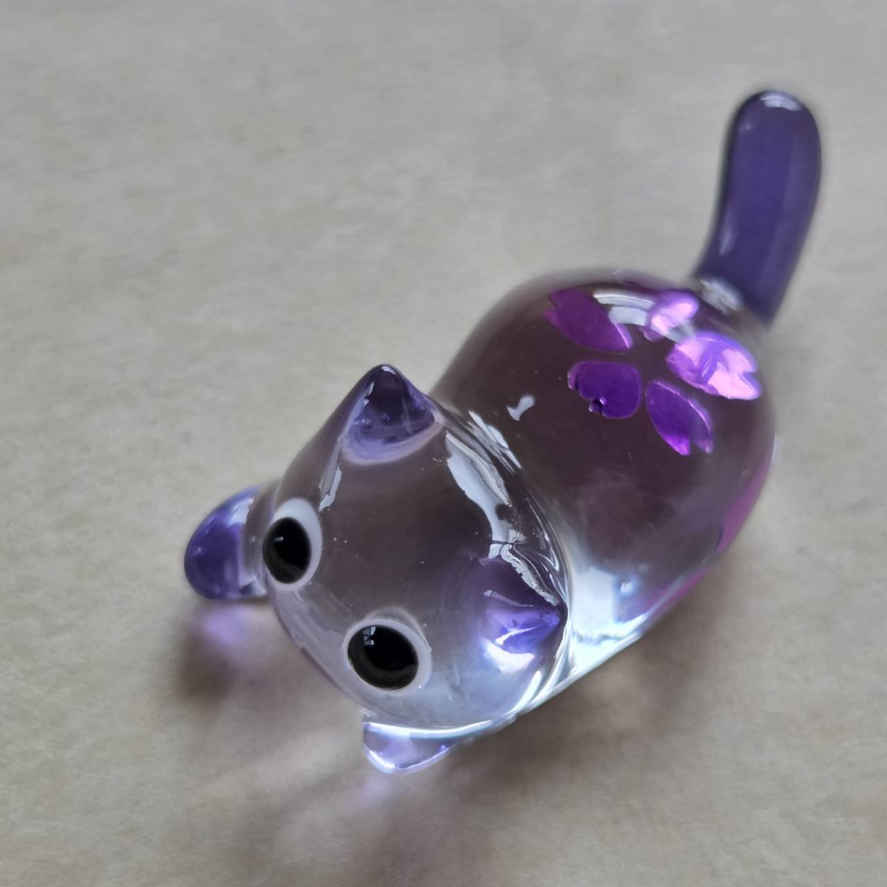 紫をポイントにしたクリアなネコちゃんの中にパープルの桜の花を一輪閉じ込めました。