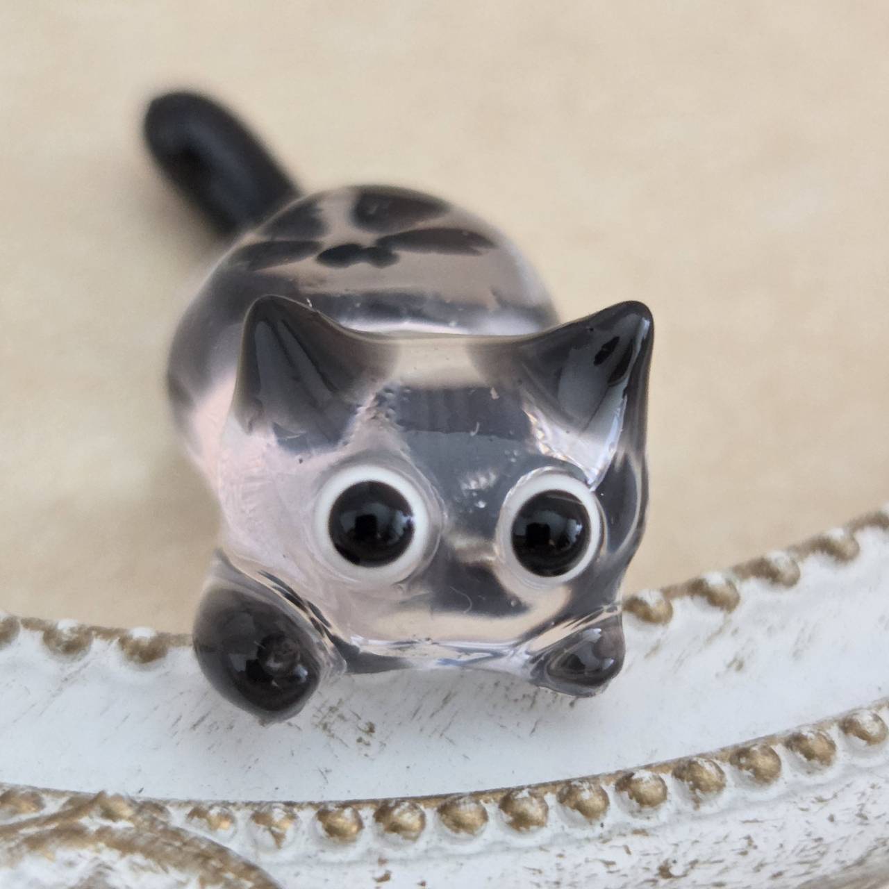 黒をポイントにしたクリアなネコちゃんの中にプラックの桜の花を一輪閉じ込めました。