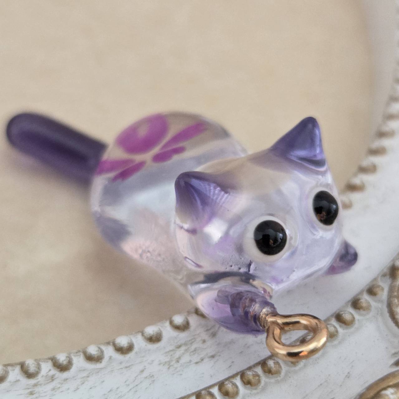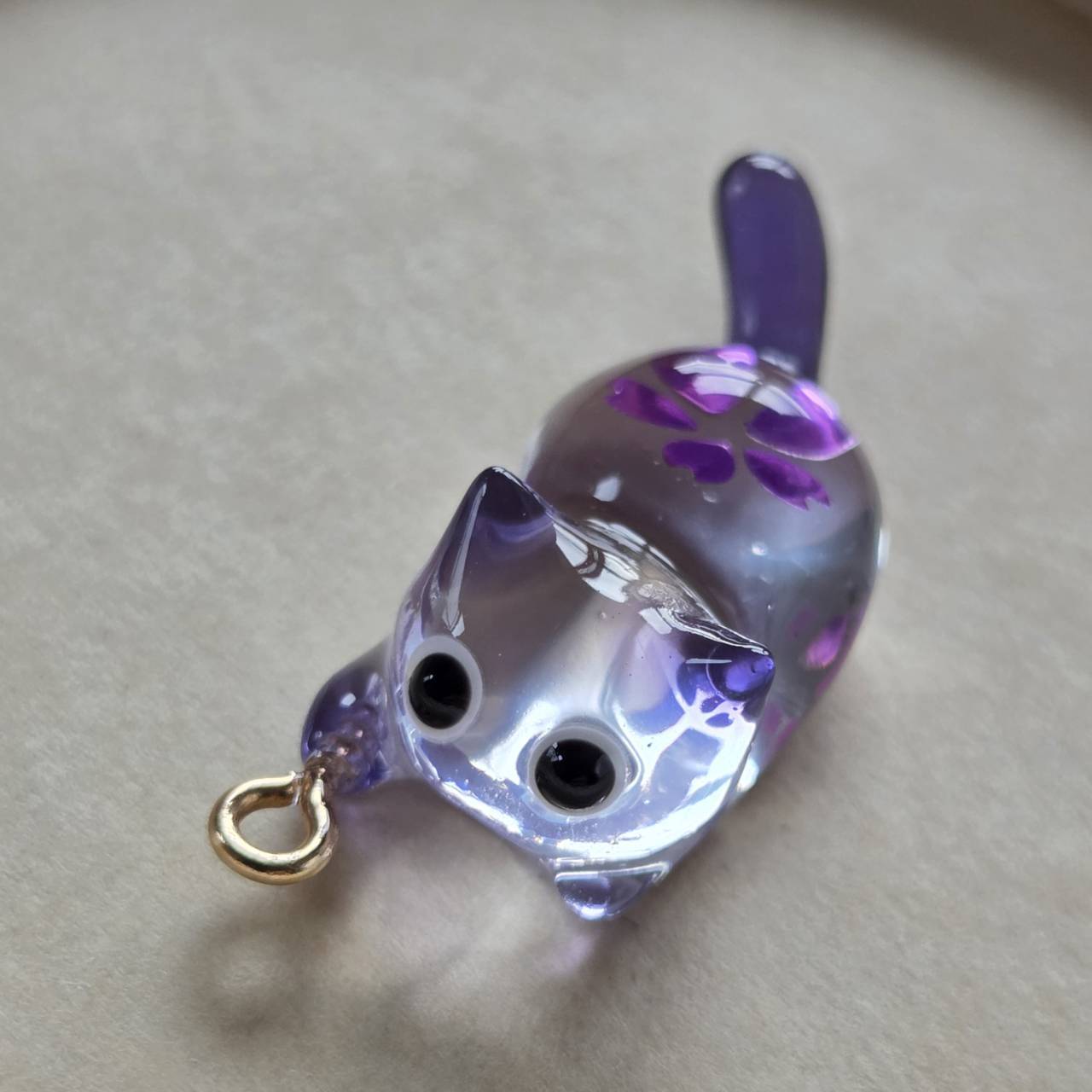 紫をポイントにしたクリアなネコちゃんの中にパープルの桜の花を一輪閉じ込めました。