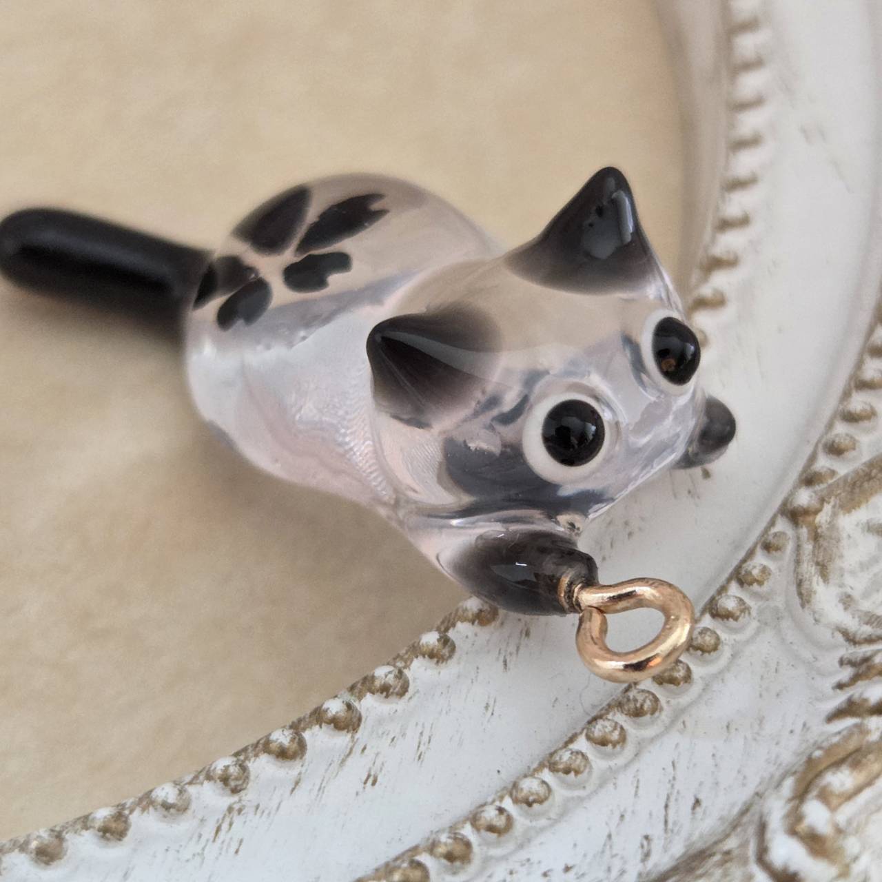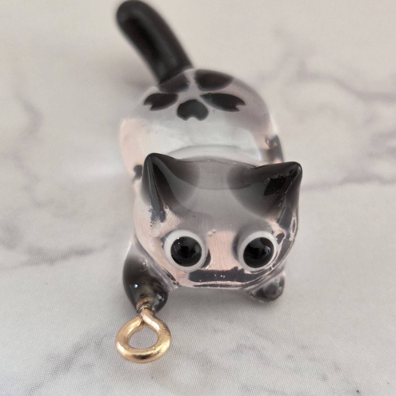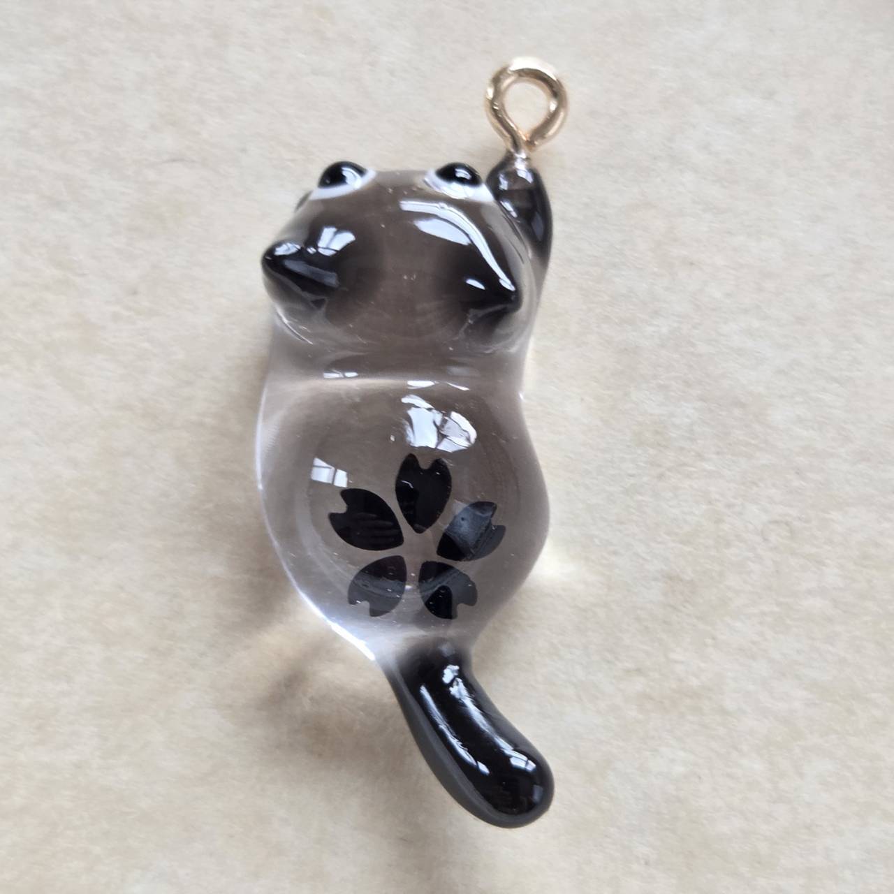 黒をポイントにしたクリアなネコちゃんの中にプラックの桜の花を一輪閉じ込めました。