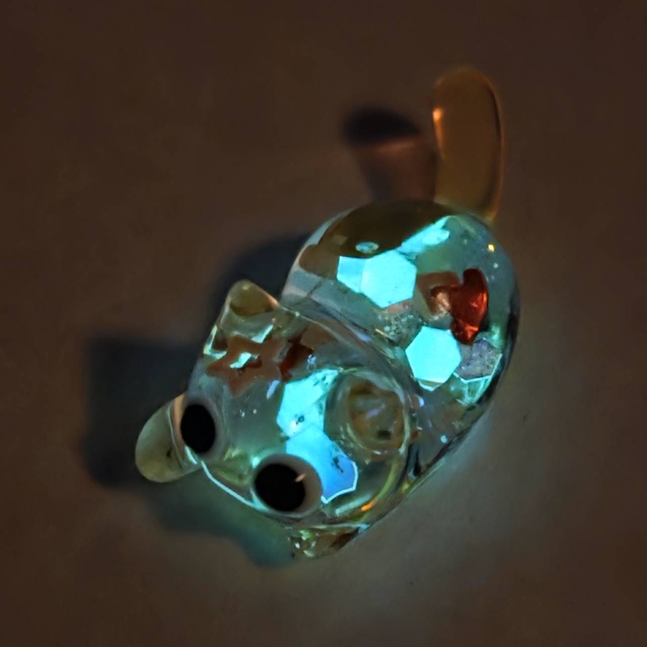 お耳と尻尾と前足は蛍光素材の着色剤を使用しているのでライトを当てると光ります。
