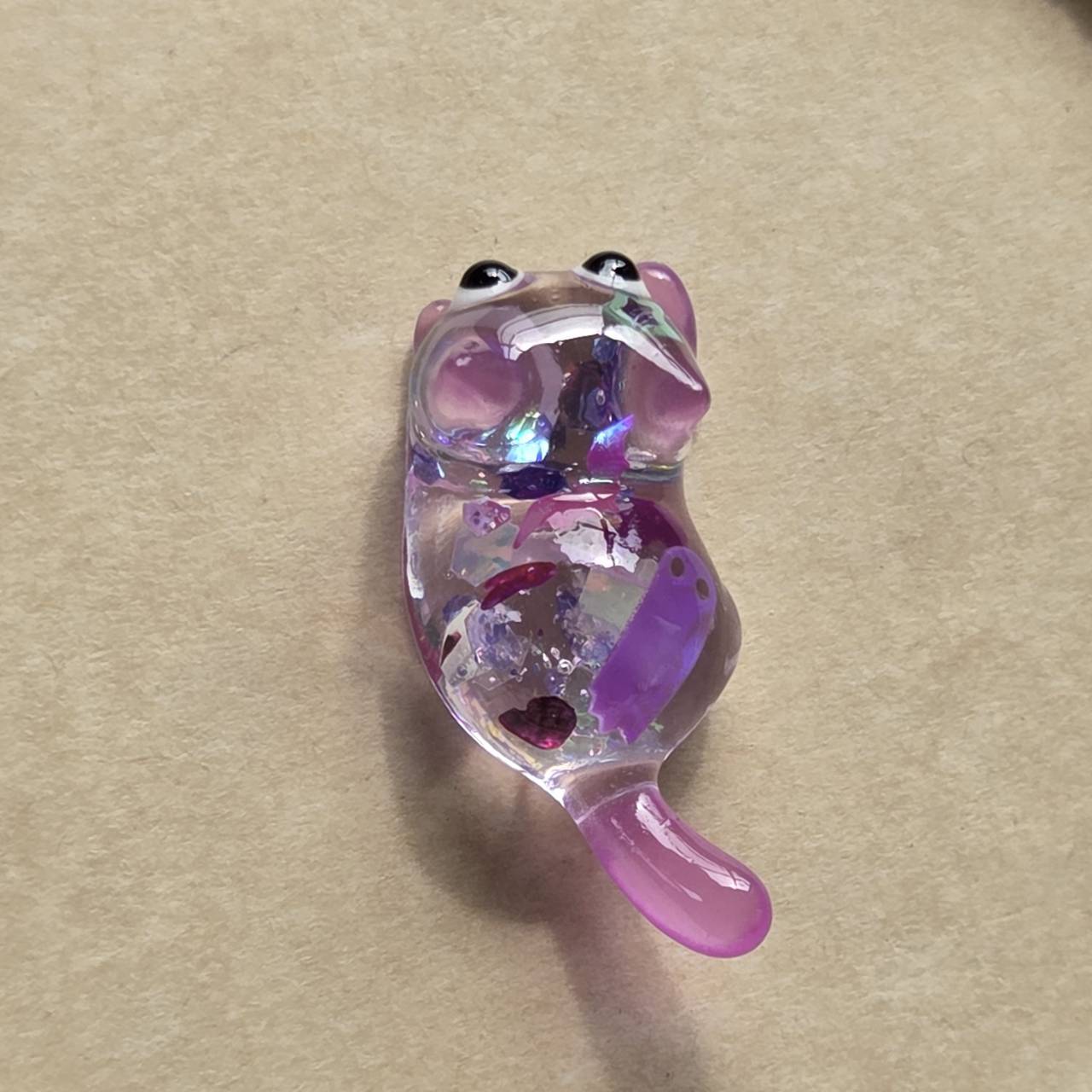 また、ねこちゃんにも蓄光ホロが封入されているのでこちらも光ります。