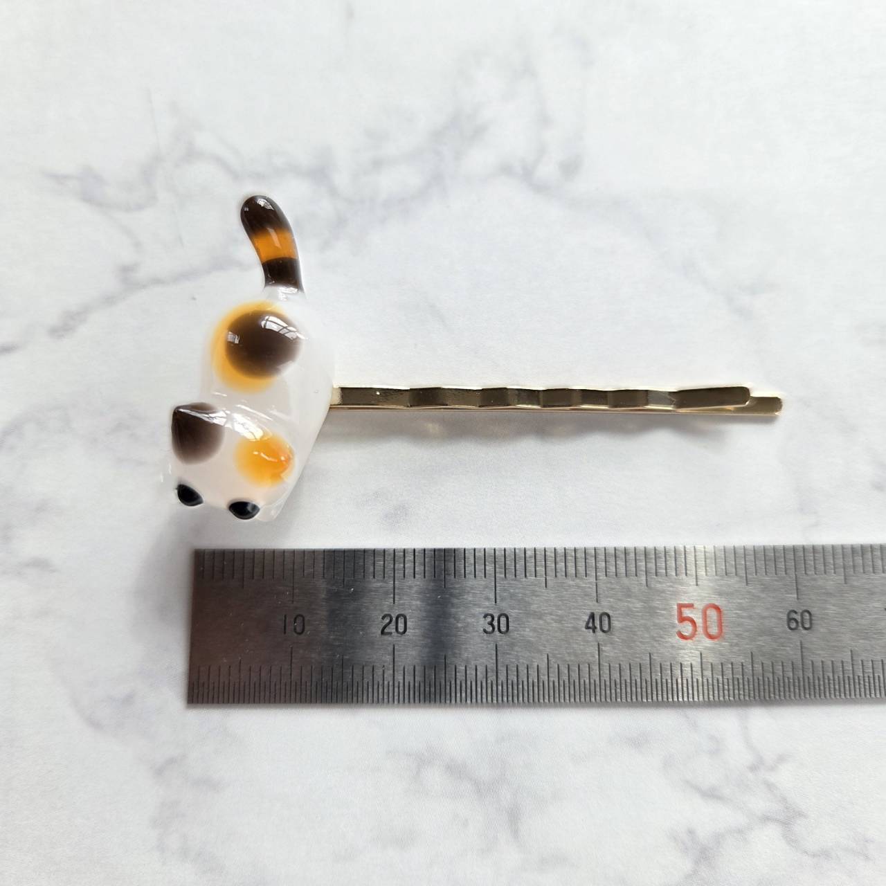 【受注販売】左用❉ミケ猫のヘアピン(ゴールド)