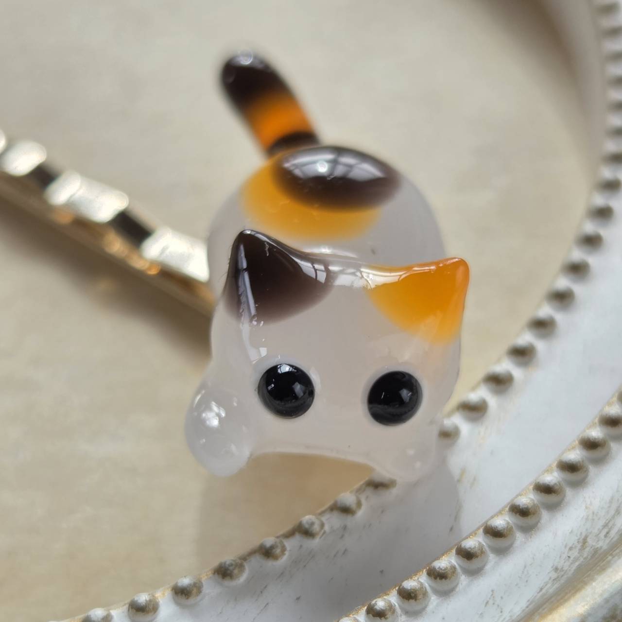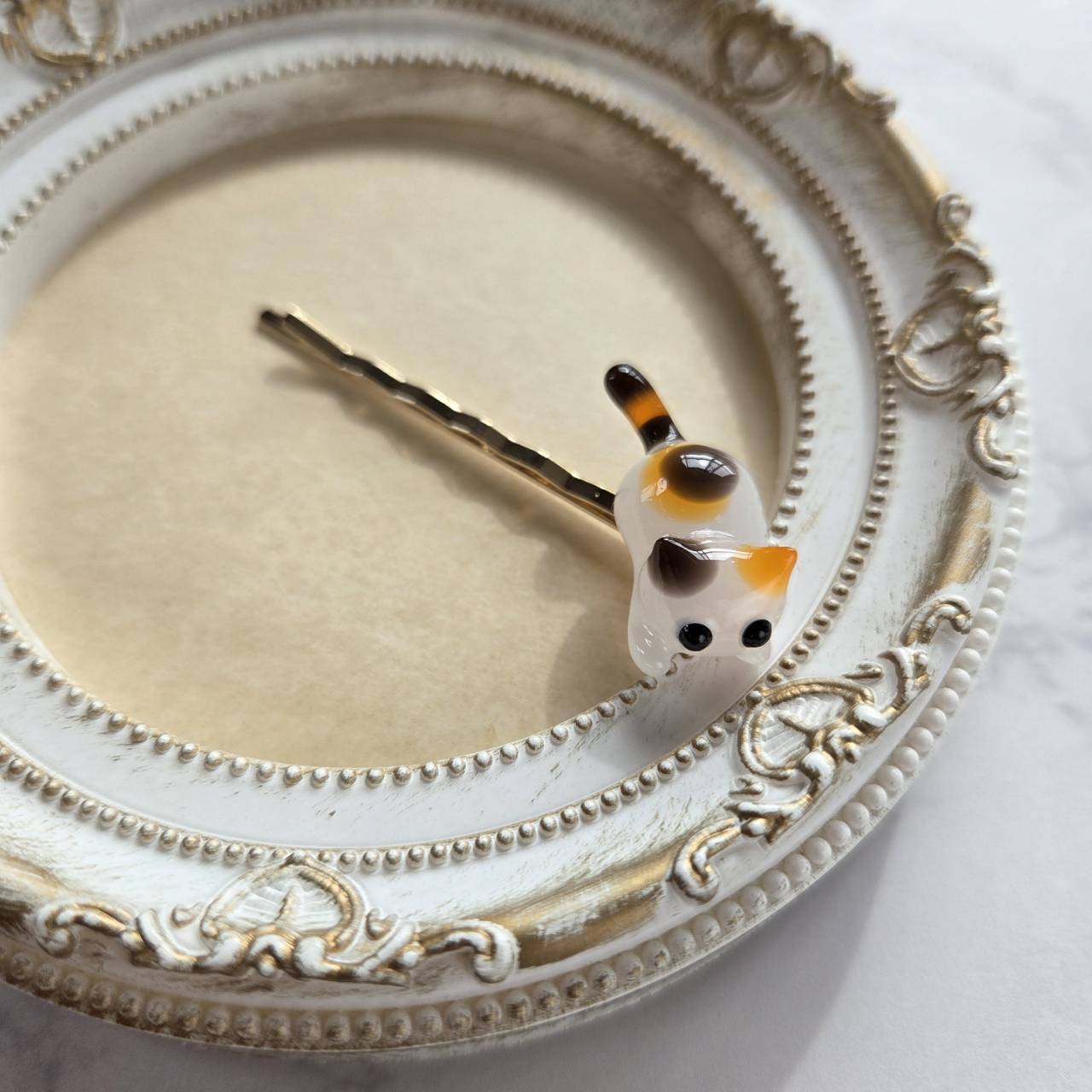 【受注販売】右用❉ミケ猫のヘアピン(ゴールド)