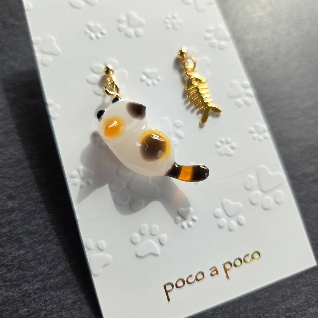 【受注販売】ピアス❉ミケ猫とゴールドのお魚の骨チャーム