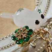 エメラルドグリーンの雪の結晶のチャームをお付けしました。