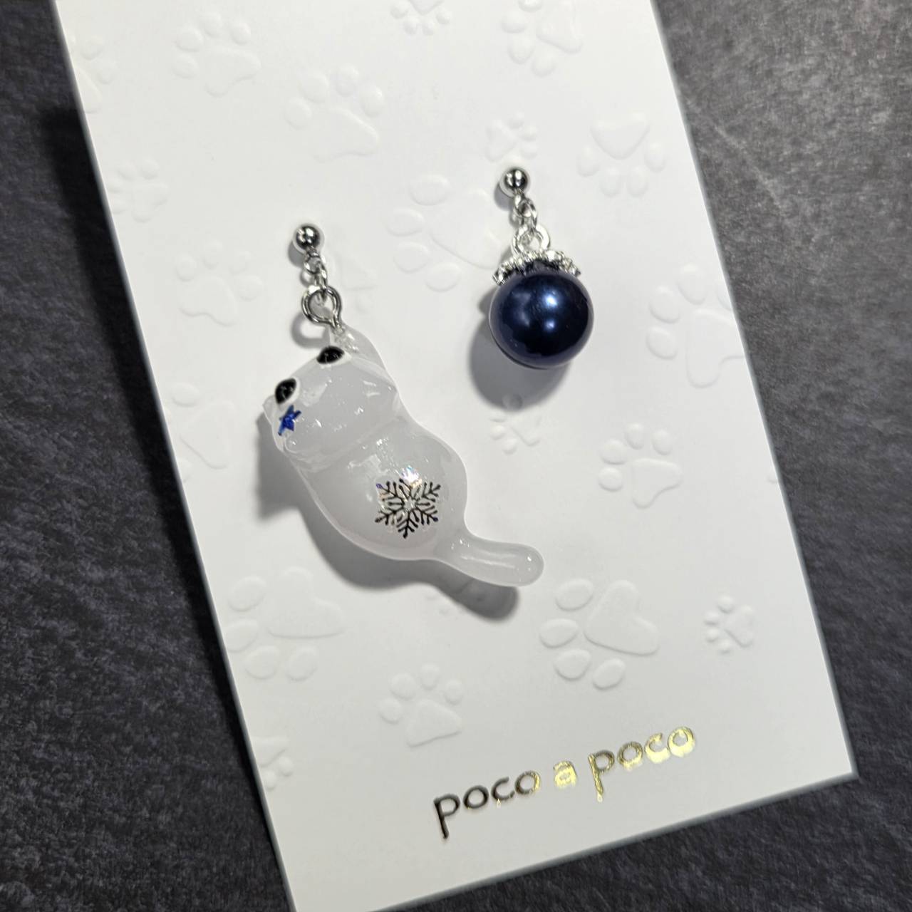 【受注販売】ピアス&イヤリング❉クリスマスの白猫❉青いクリスマスボールのチャーム付き