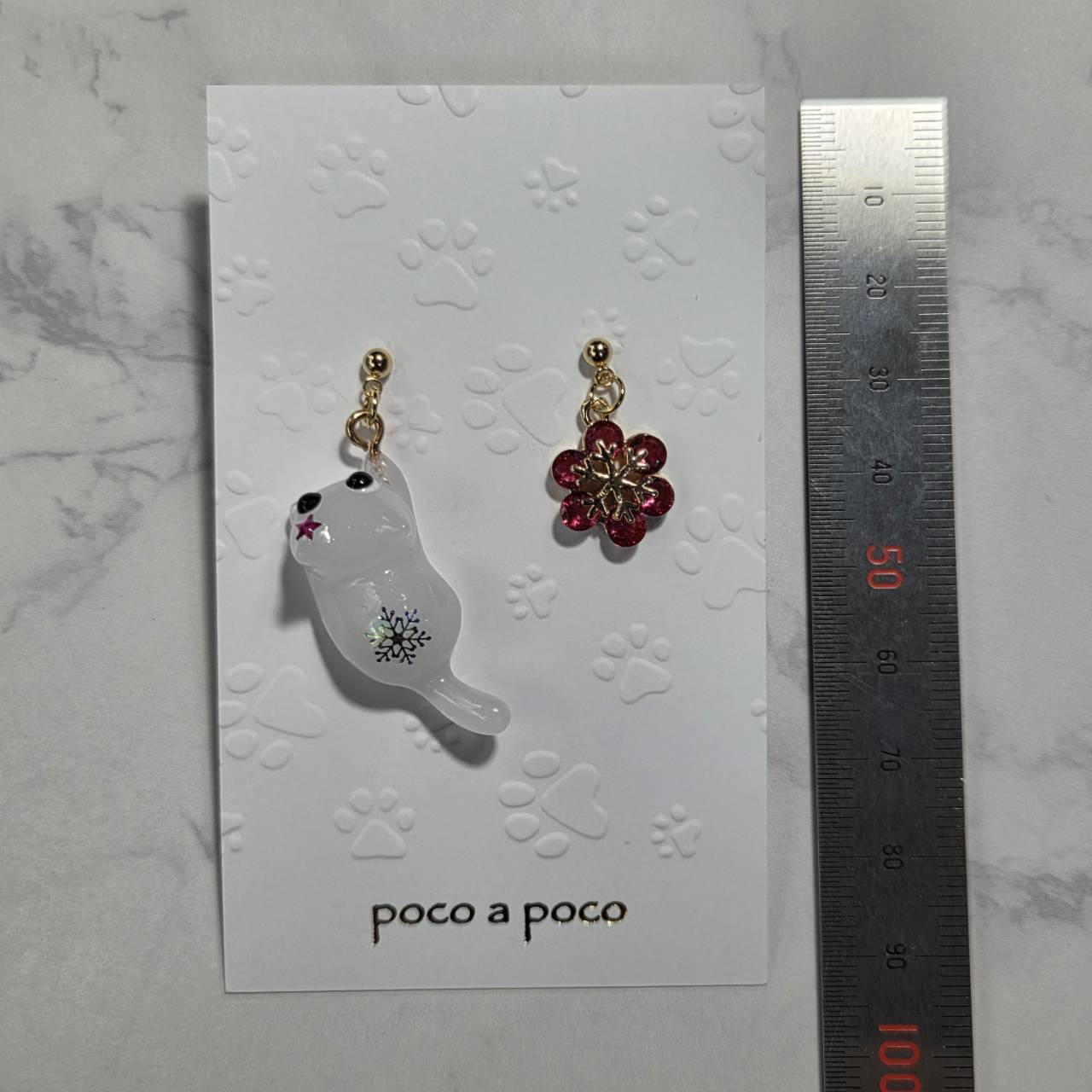 もう片方はローズピンクの雪の結晶のチャームのチャームをお付けしました。