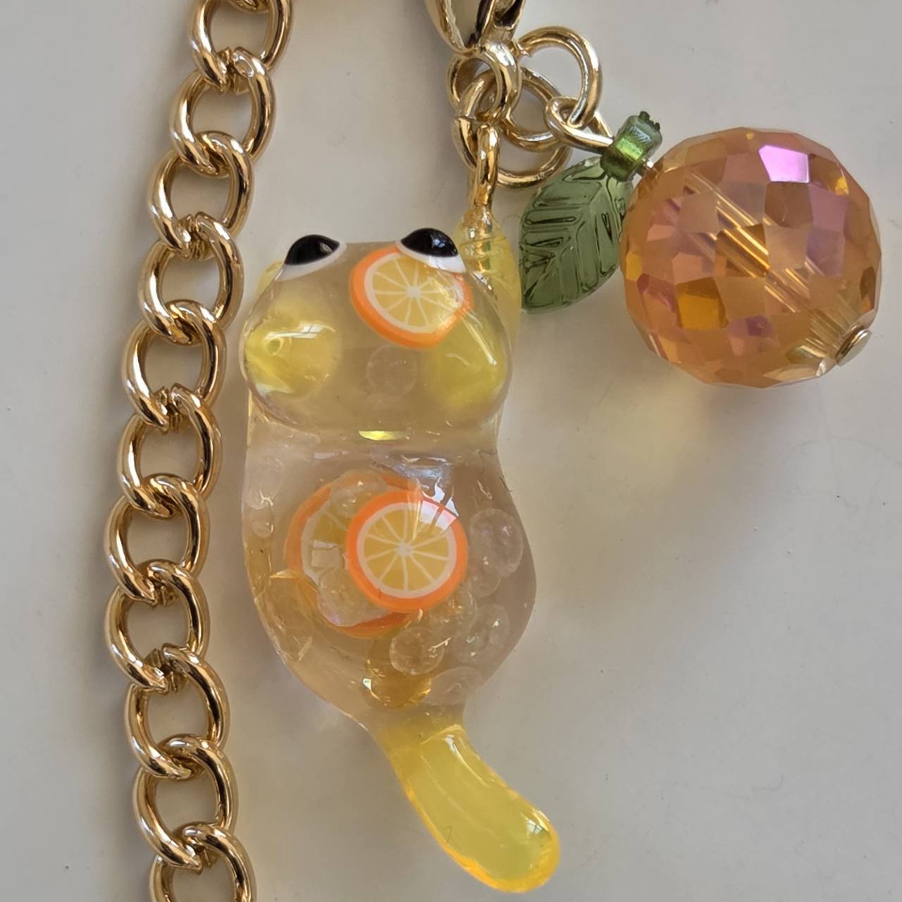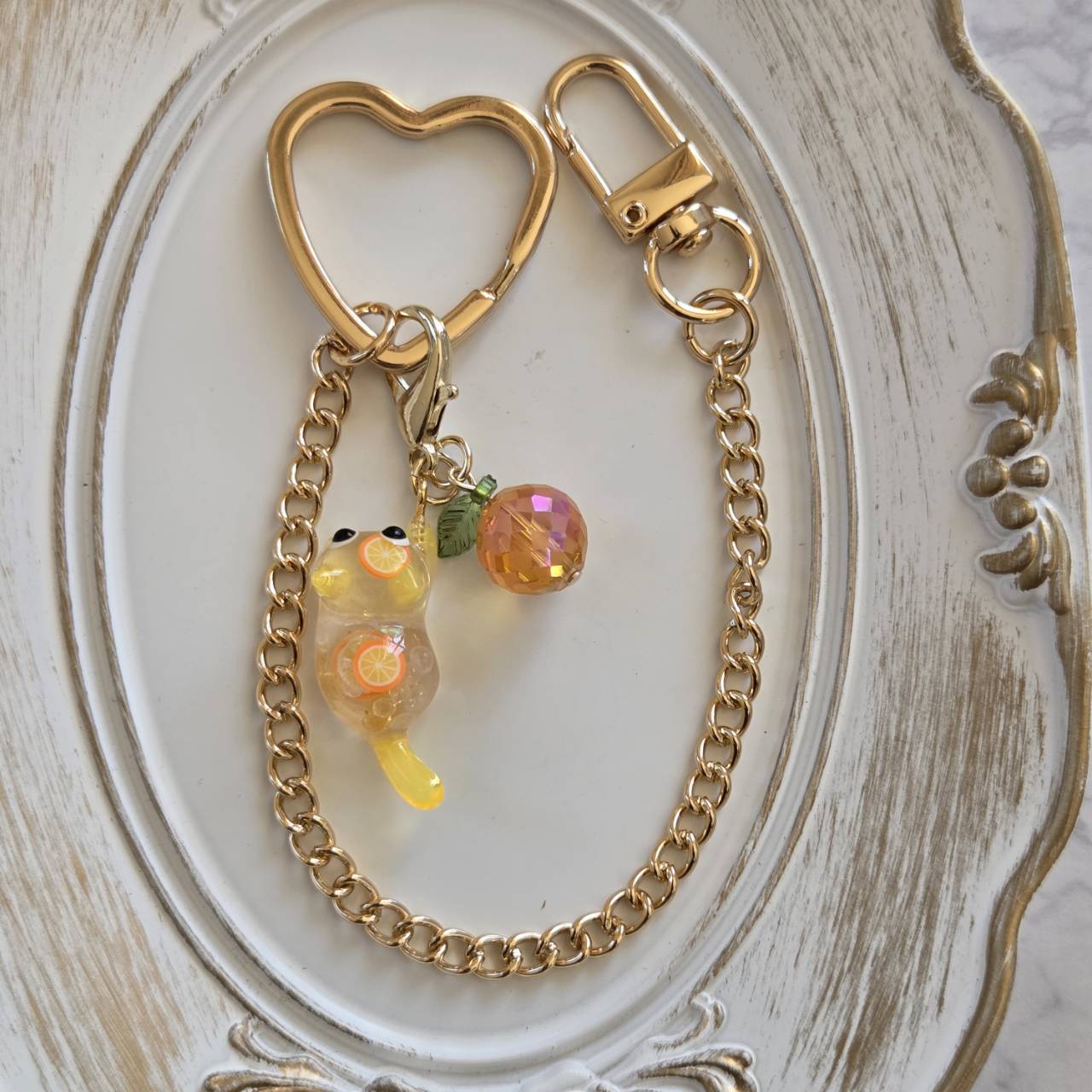 【受注販売】ニャンタオレンジのバッグチャーム❉多面カットガラスのオレンジのチャーム付き