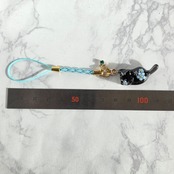 【受注販売】3月の誕生石アクアマリン❉黒猫のストラップ