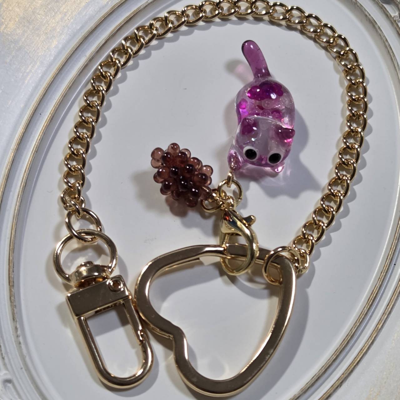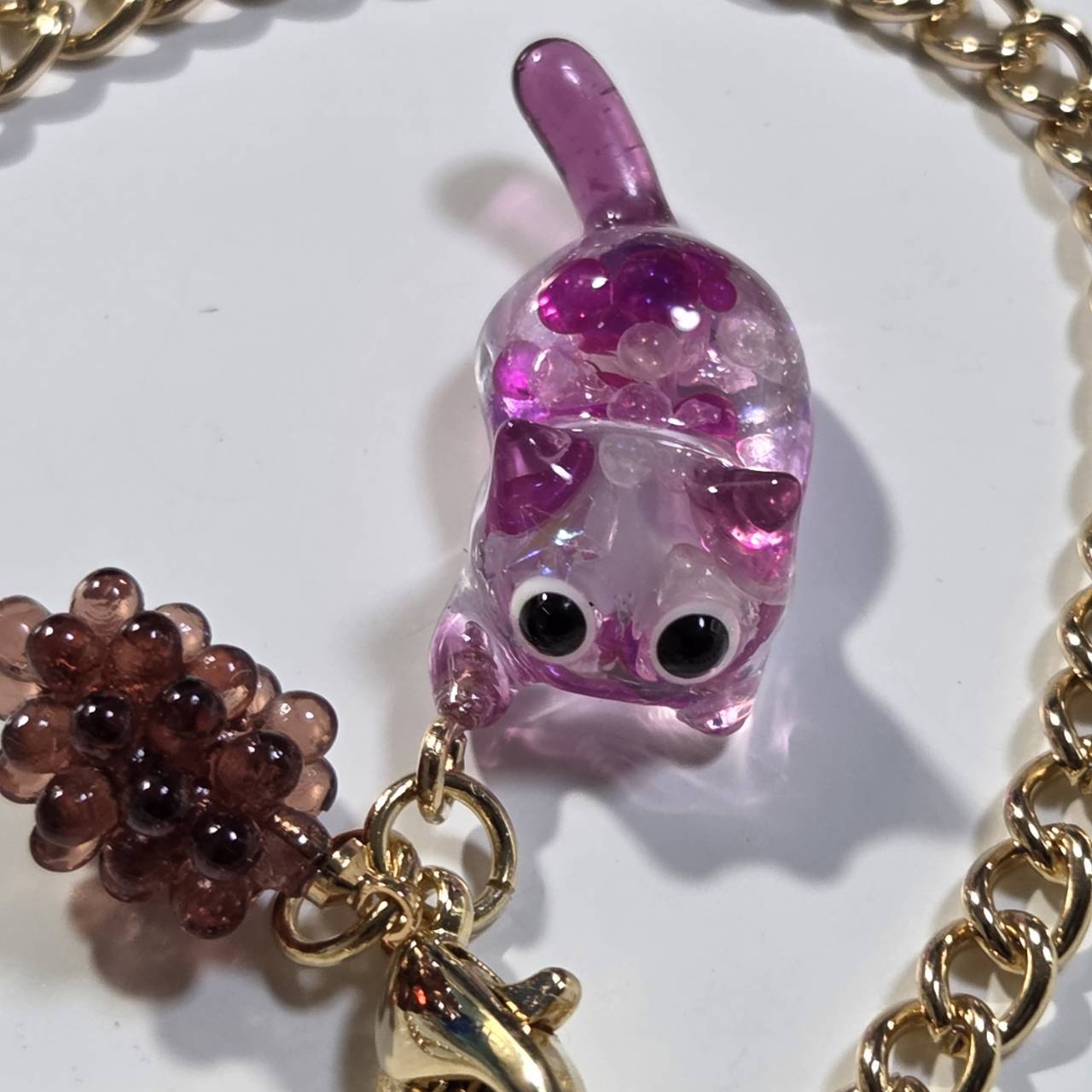 レジンで作ったねこモチーフのバッグチャームになります。