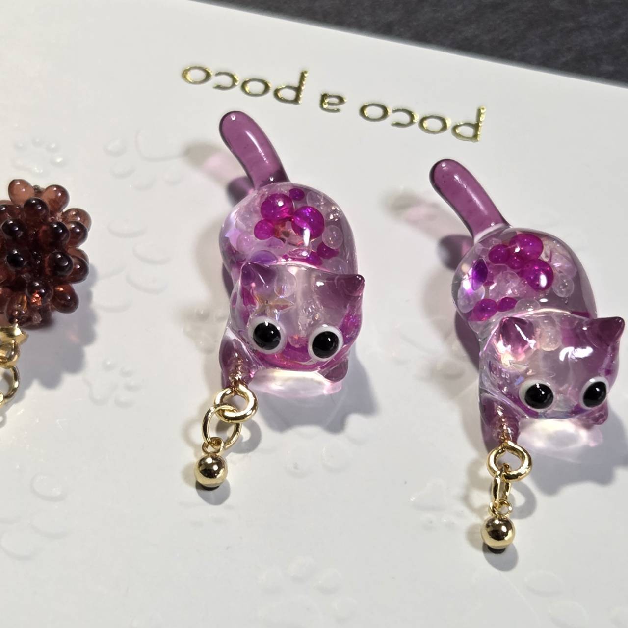 【受注販売】ピアス❉ニャンタグレープ2匹とブドウのチャーム