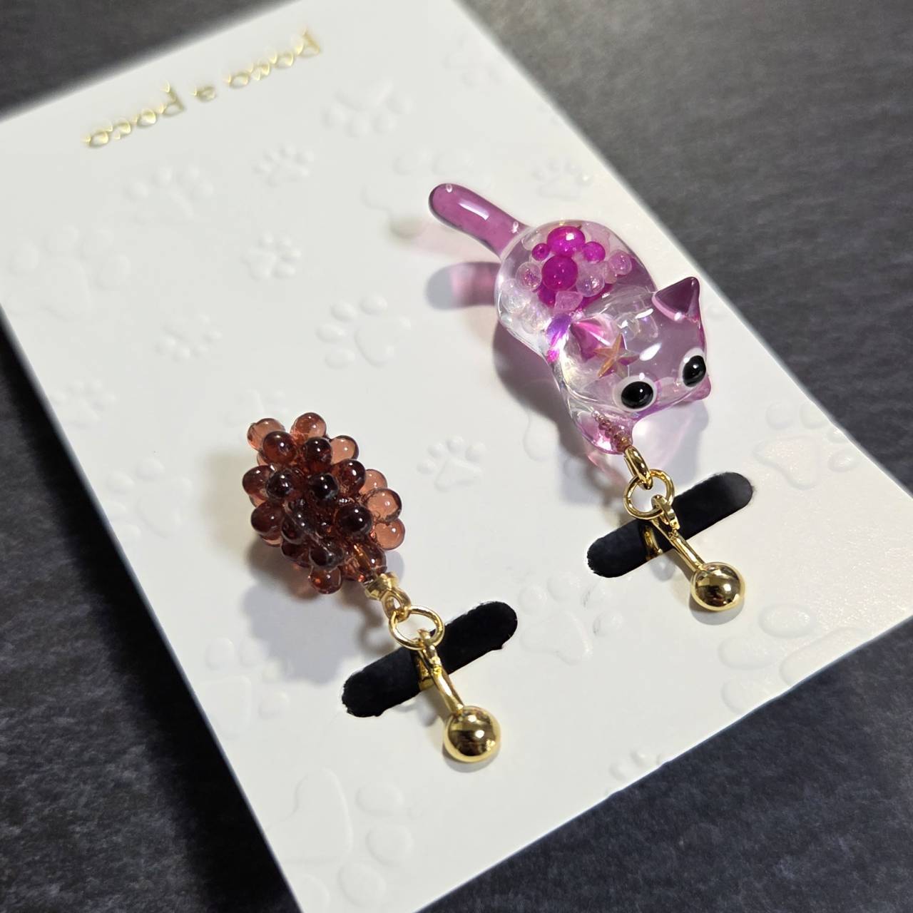【受注販売】イヤリング❉ニャンタグレープとブドウのチャーム