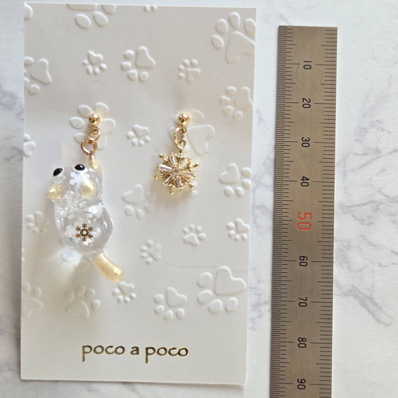 もう片方はジルコニアが付いたゴールドのスノーフレークのチャームをお付けしました。