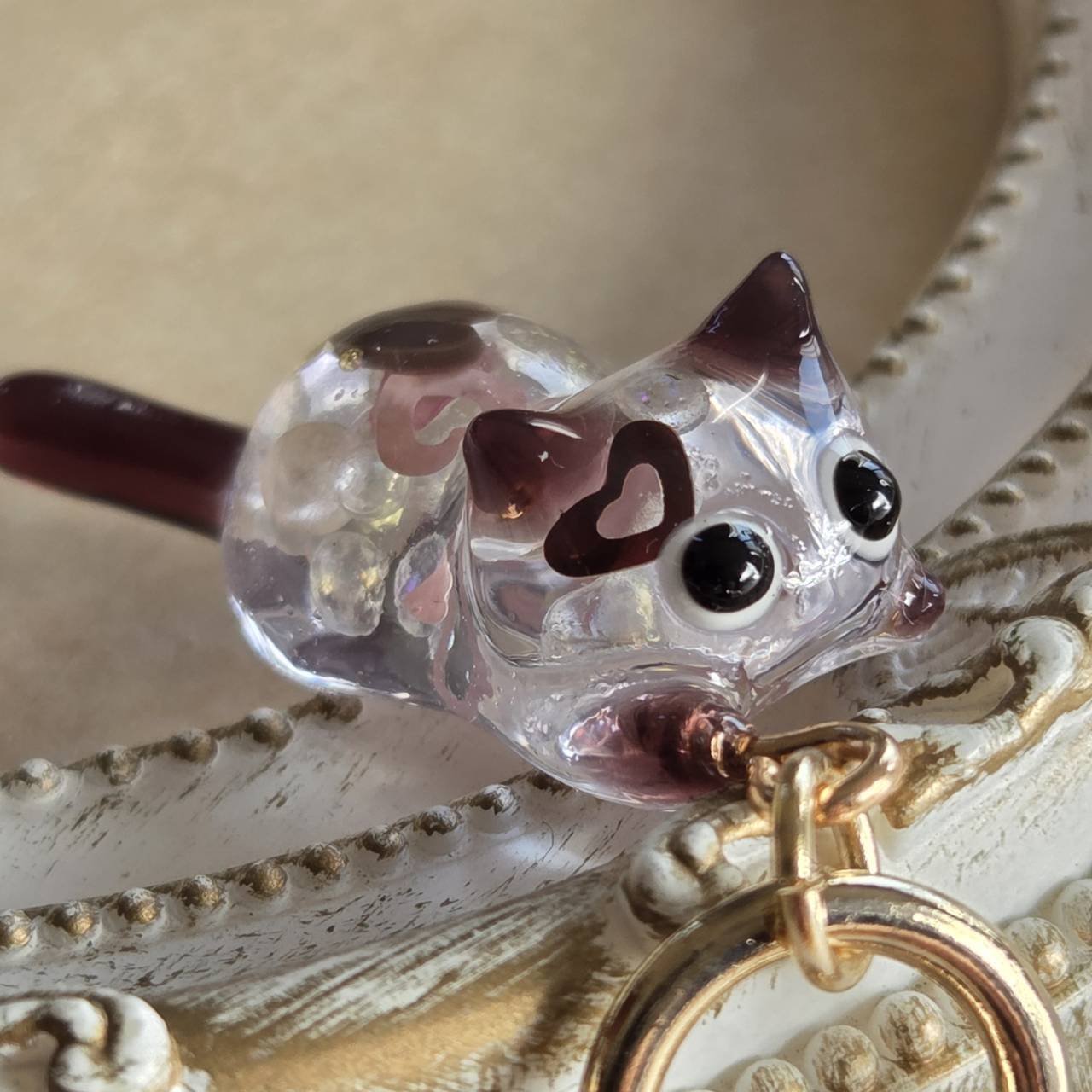 ねこちゃんの中にはハートやパール、キラキラのブリオンが詰め込まれています。