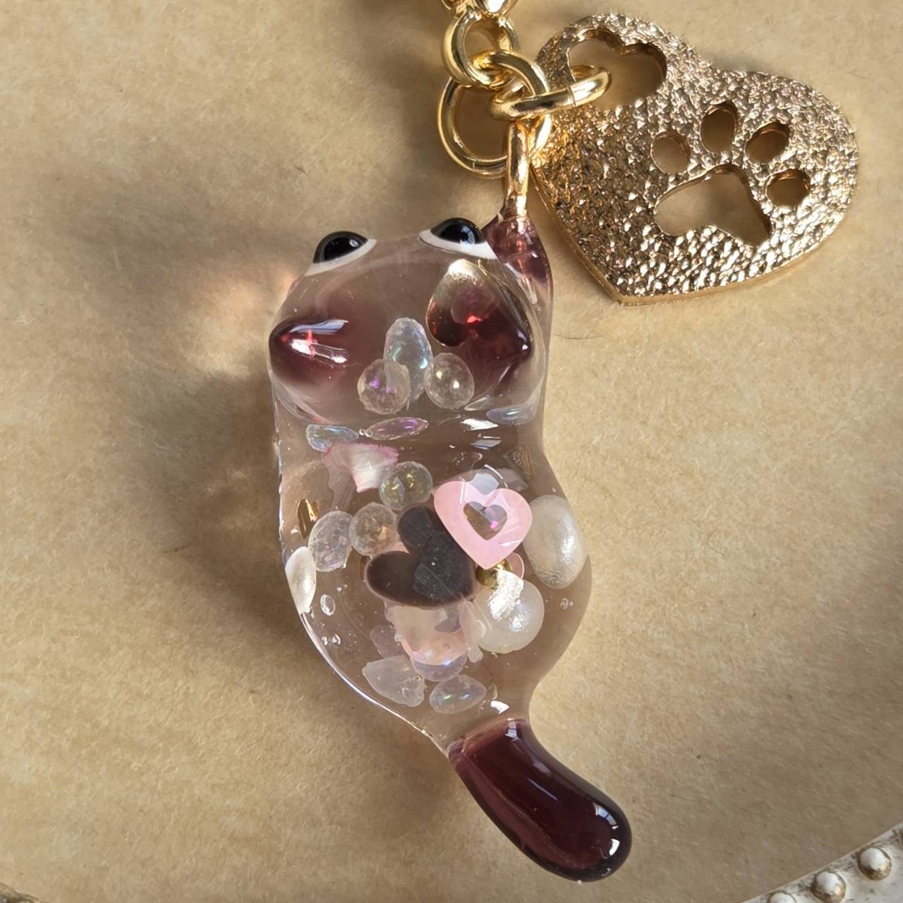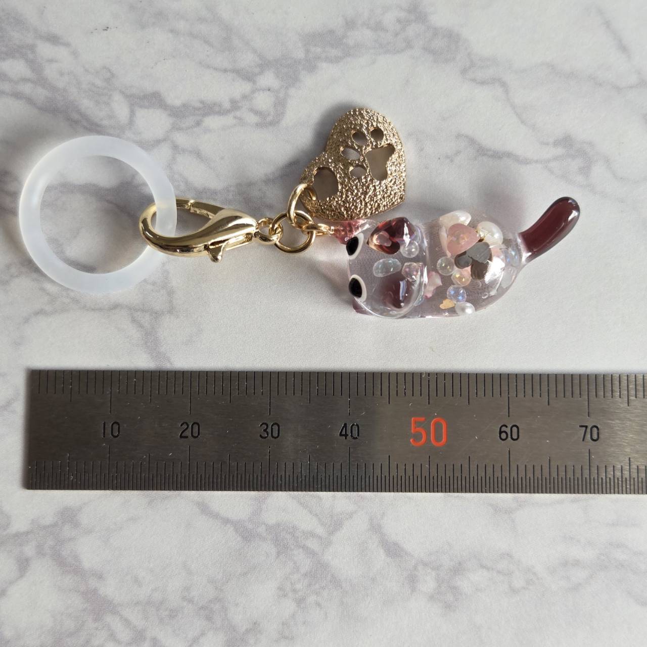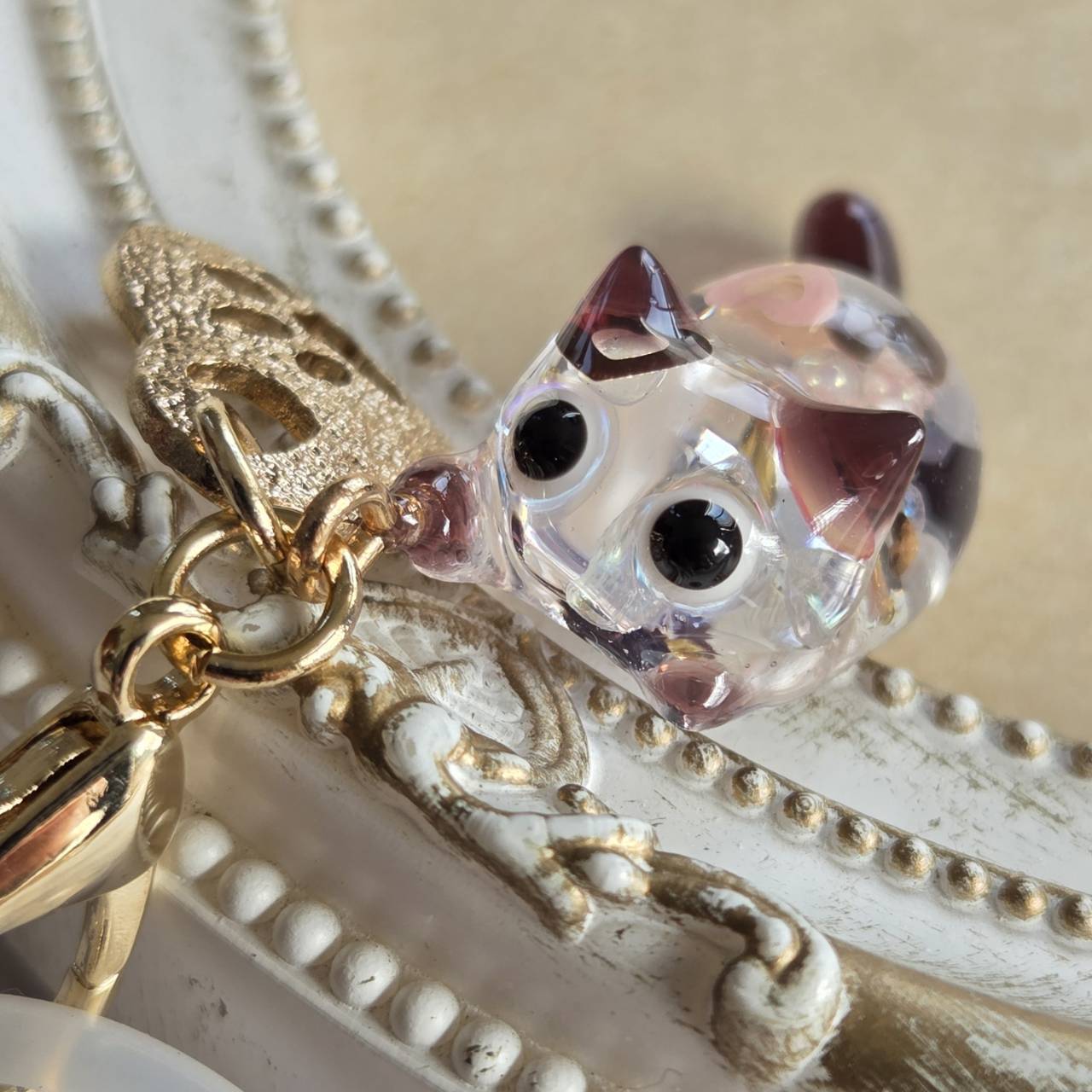 ねこちゃんの中にはハートやパール、キラキラのブリオンが詰め込まれています。