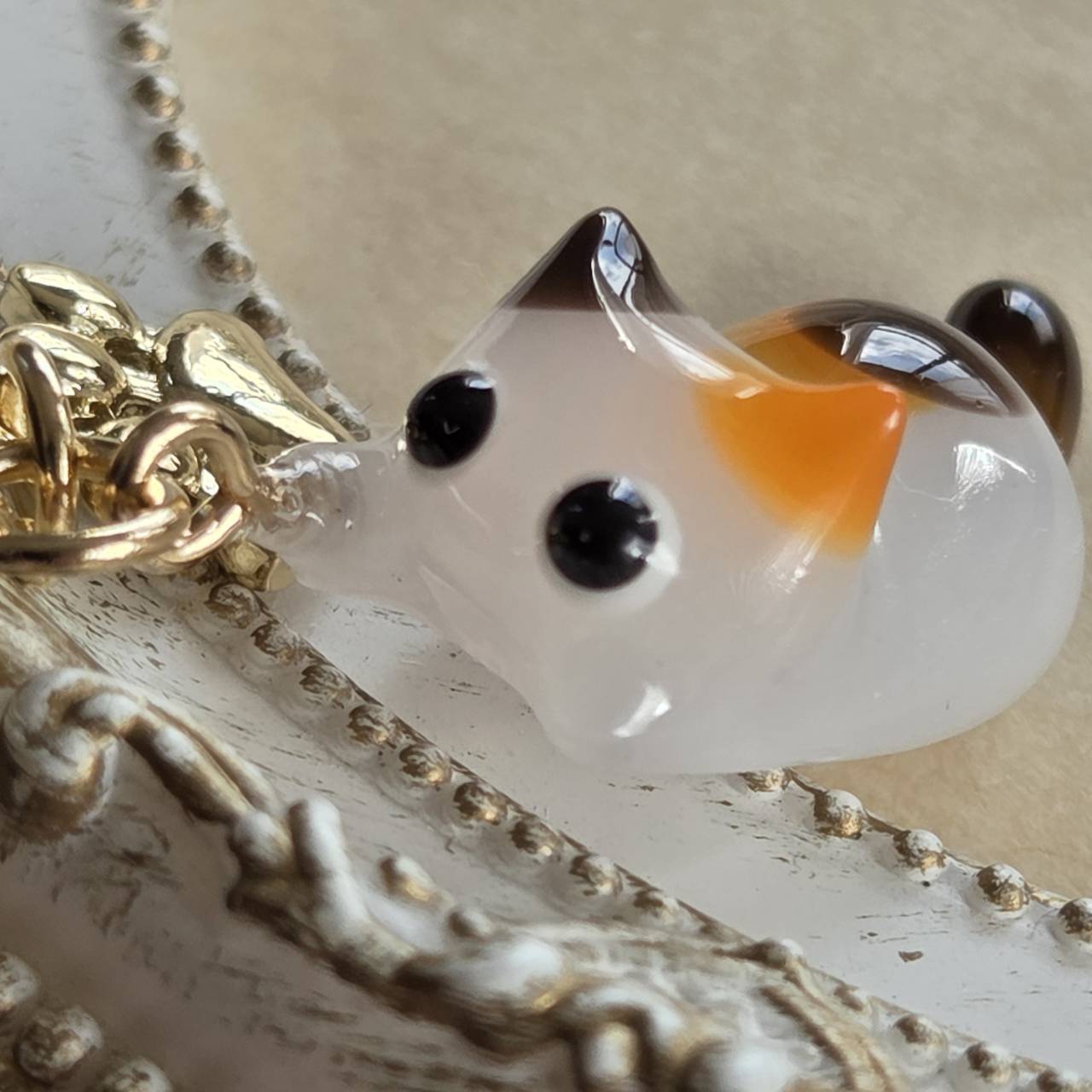 ゴールドの肉球のチャームをお付けしました。
