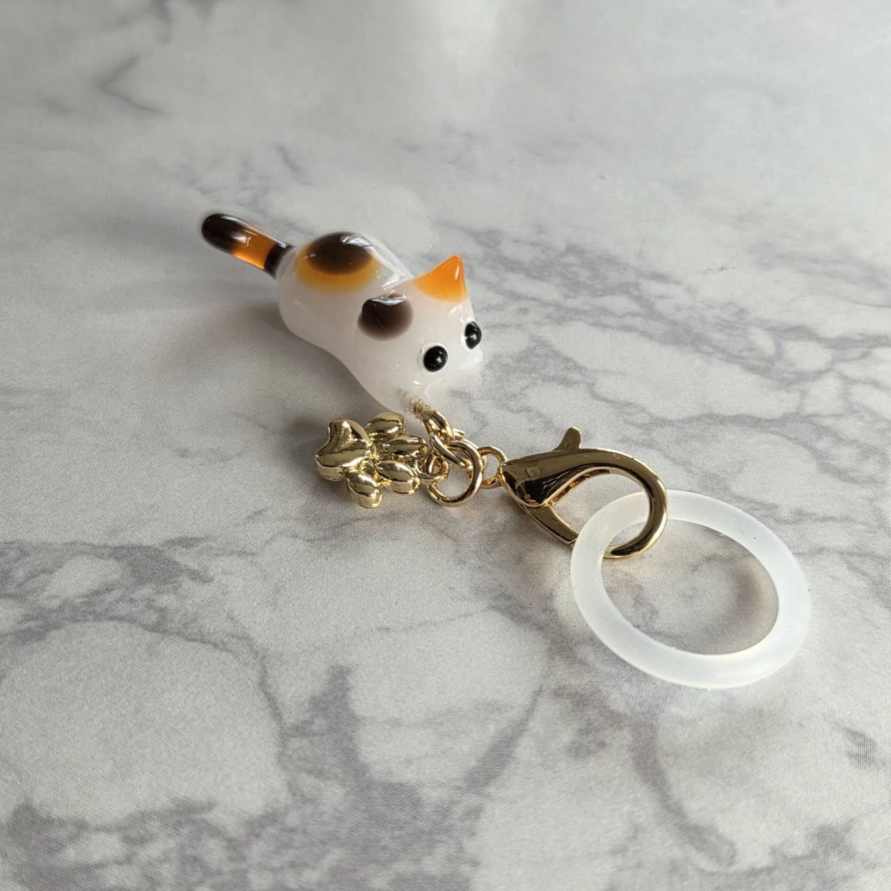 【受注販売】ミケ猫のアンブレラマーカー(ゴールド)❉肉球のチャーム付き
