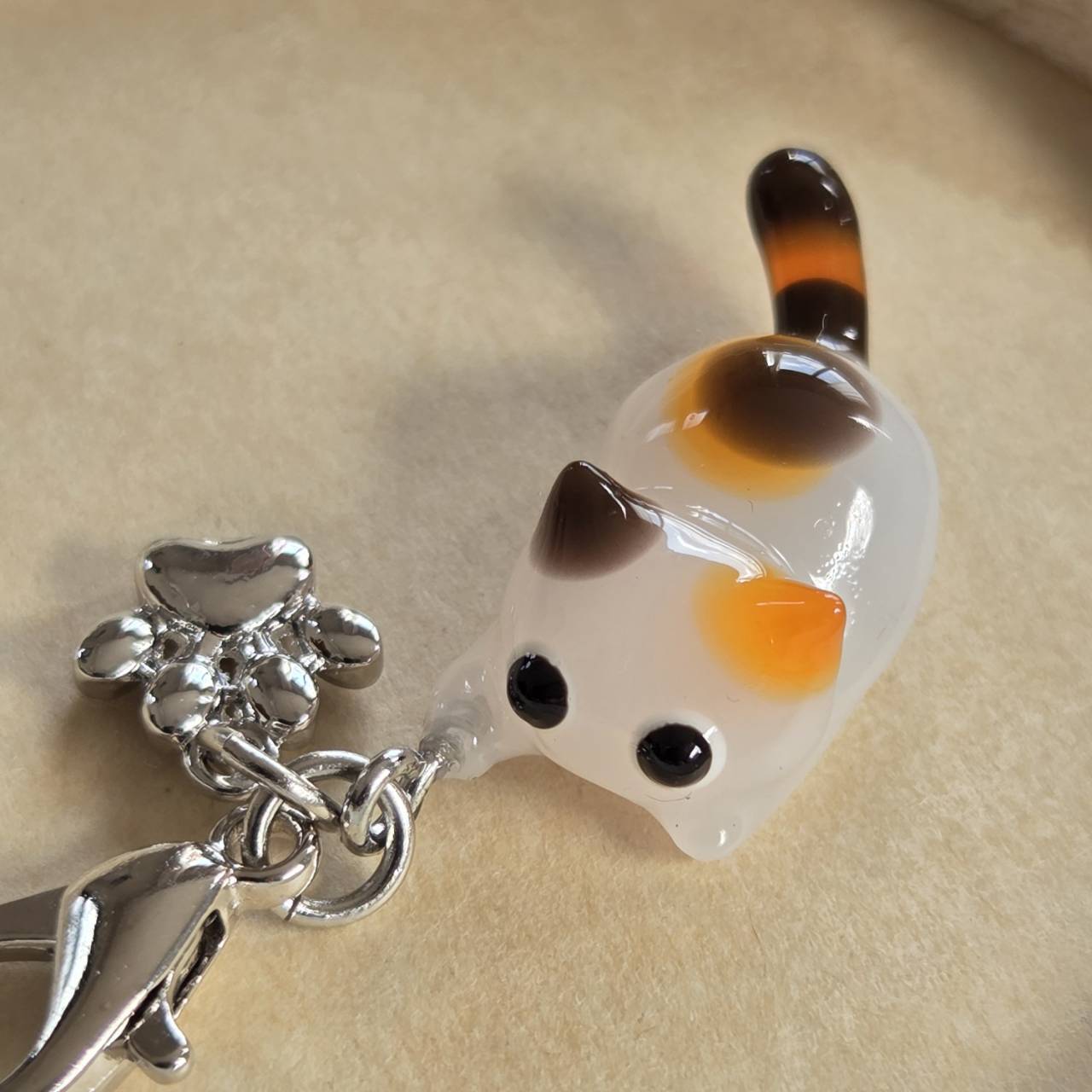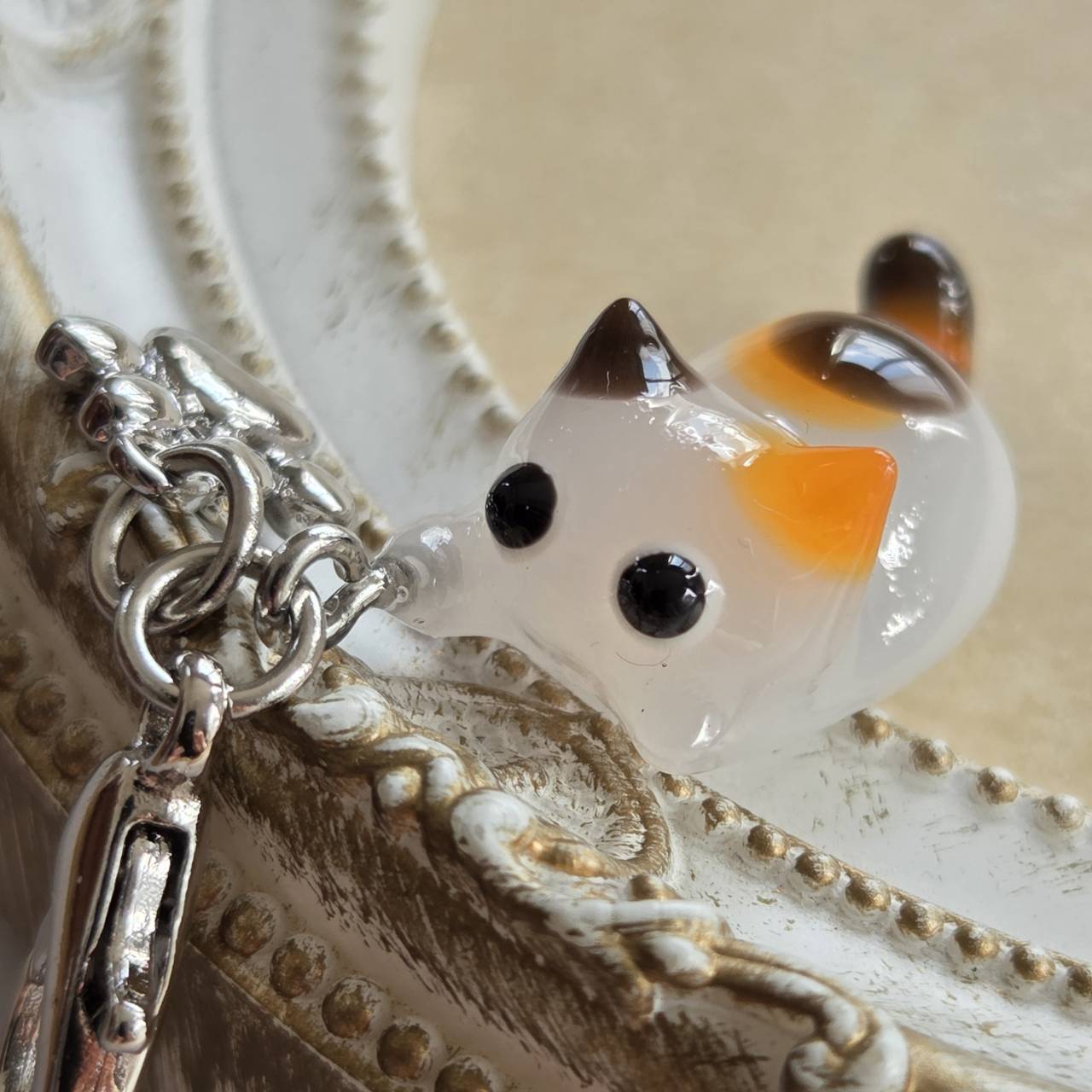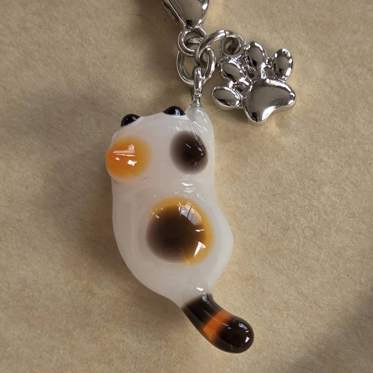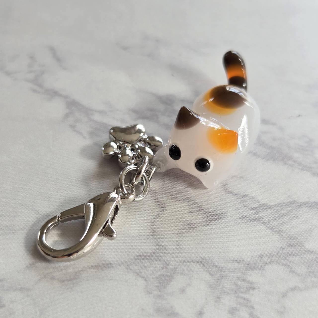 【受注販売】ミケ猫のチャーム(シルバー)❉肉球のチャーム付き