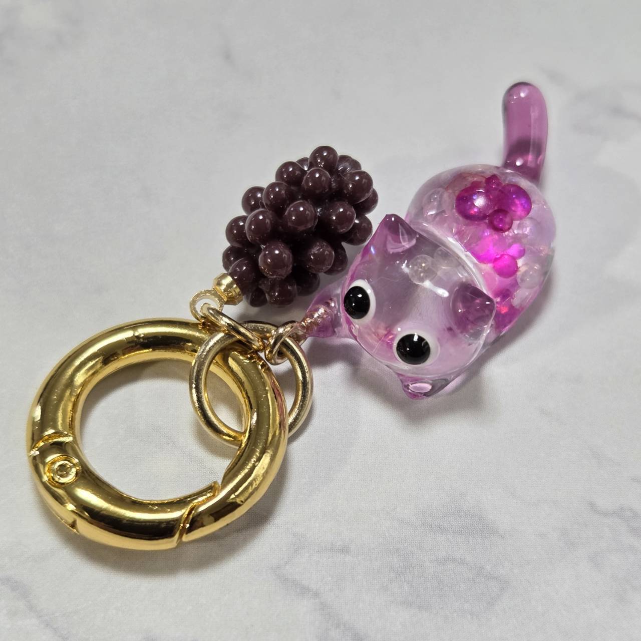 ねこちゃんと肉球チャームは丸型のカラビナで取り付けてありますので、簡単に取り外すことが可能です。