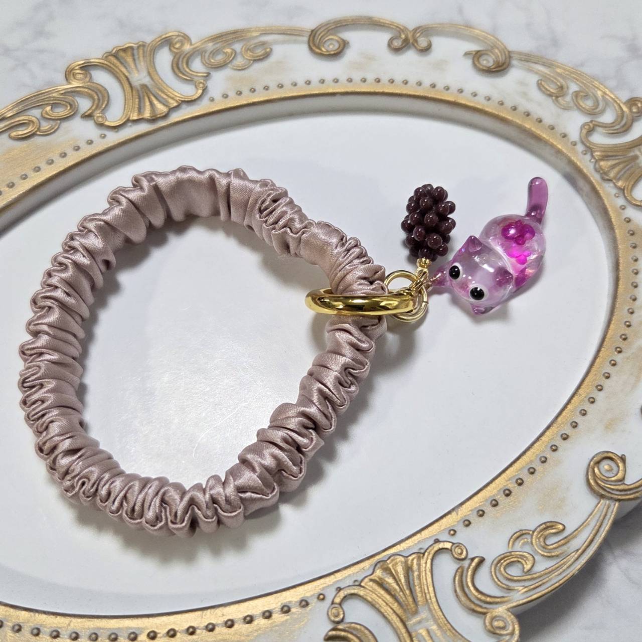 【受注販売】ニャンタグレープのシュシュ❉ブドウのチャーム付き