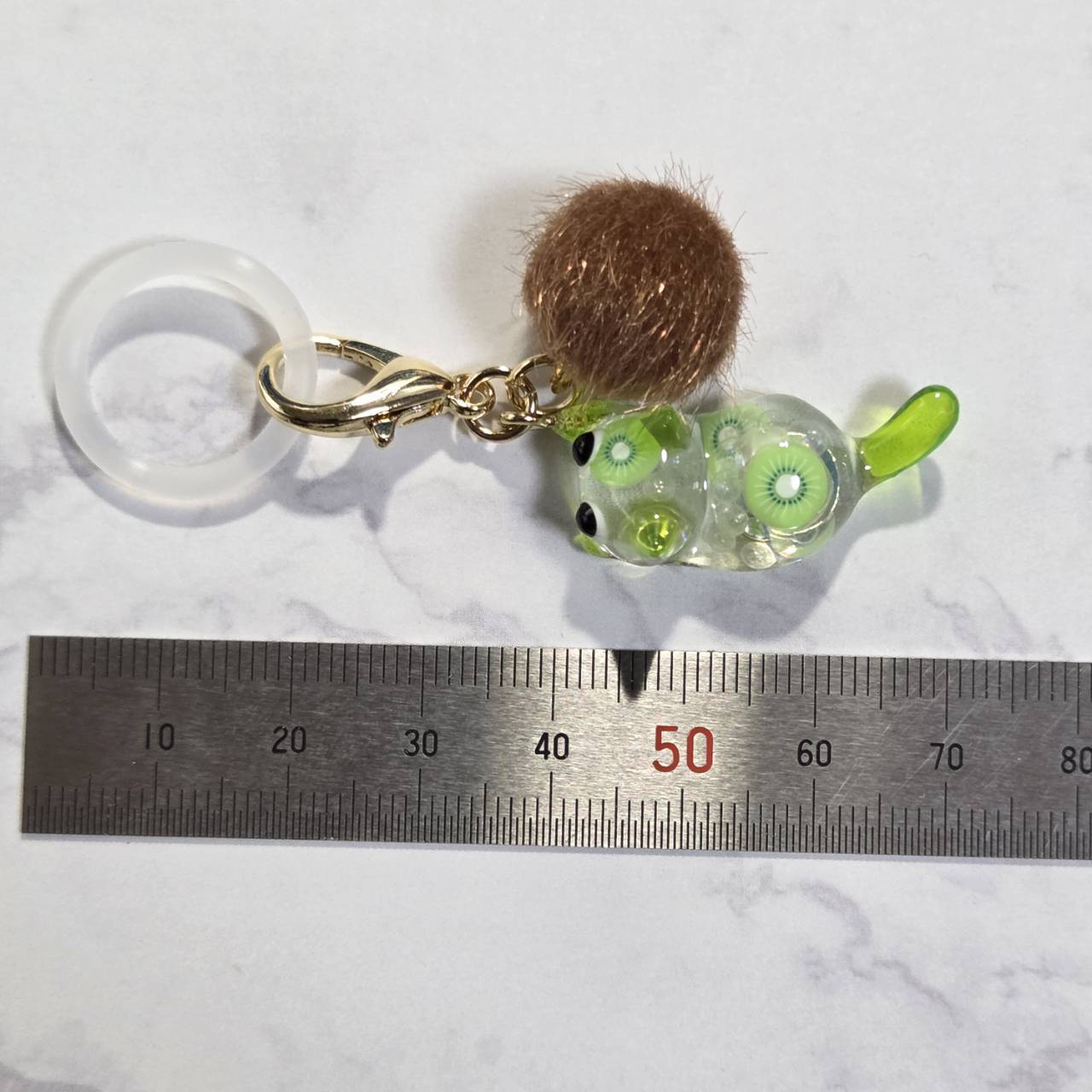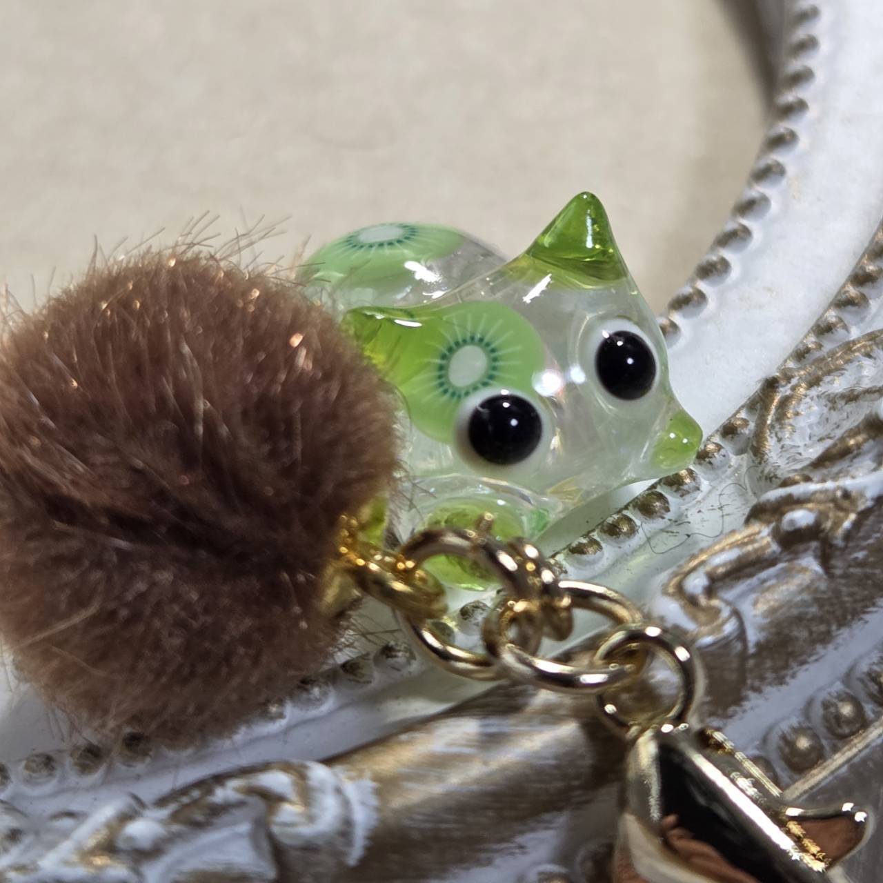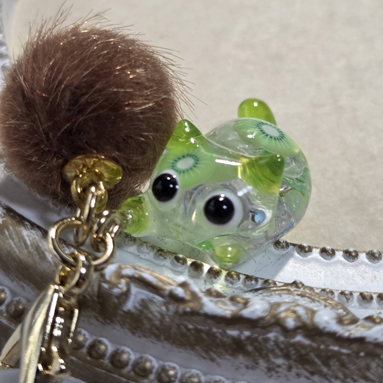 キウイに見立てたブラウンのファーボールをお付けしました。