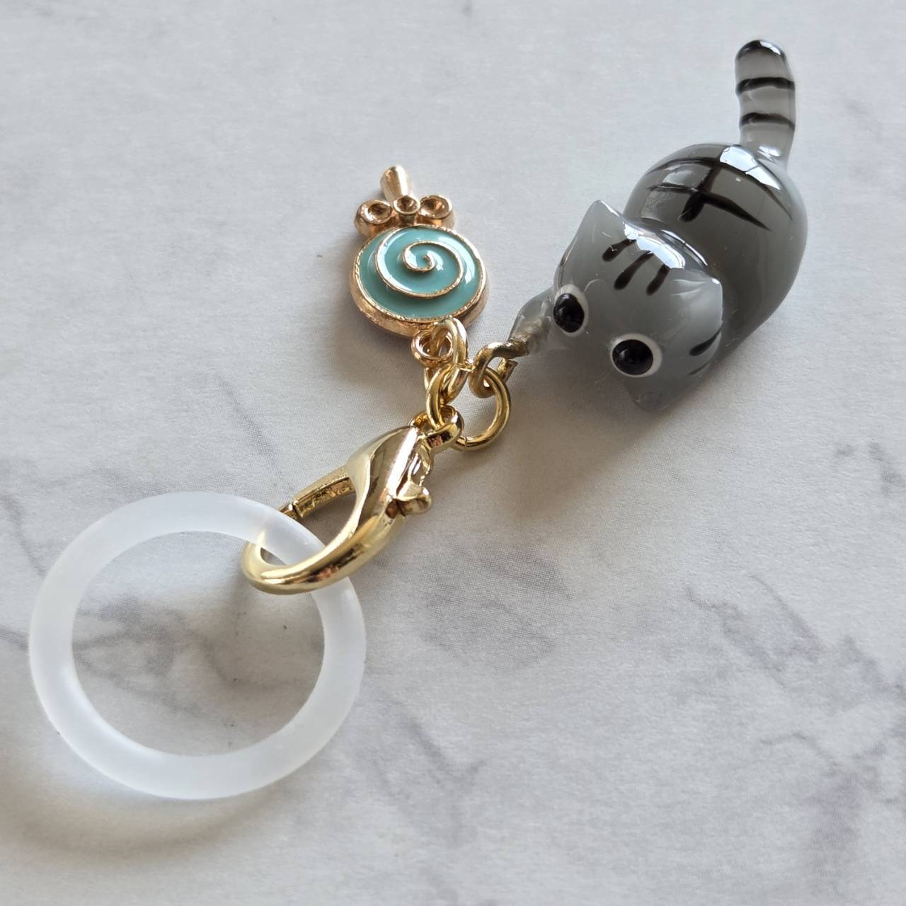 【受注販売】サバトラにゃんこのアンブレラマーカー❉ブルーのキャンディーチャーム付き