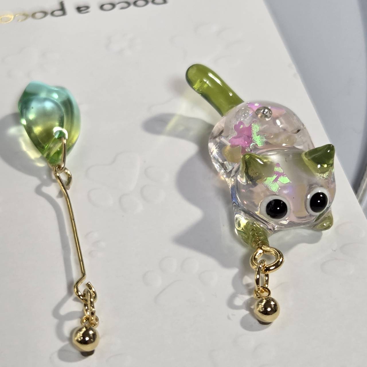 【受注販売】ピアス❉桜餅にゃんことグリーンの桜の花びらのチャーム