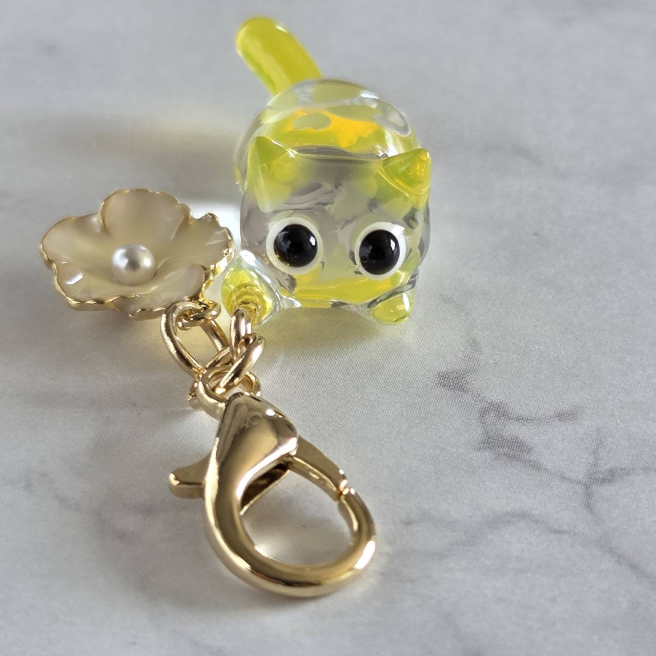 【受注販売】黄色い桜にゃんこのチャーム❉ベージュの桜のチャーム付き