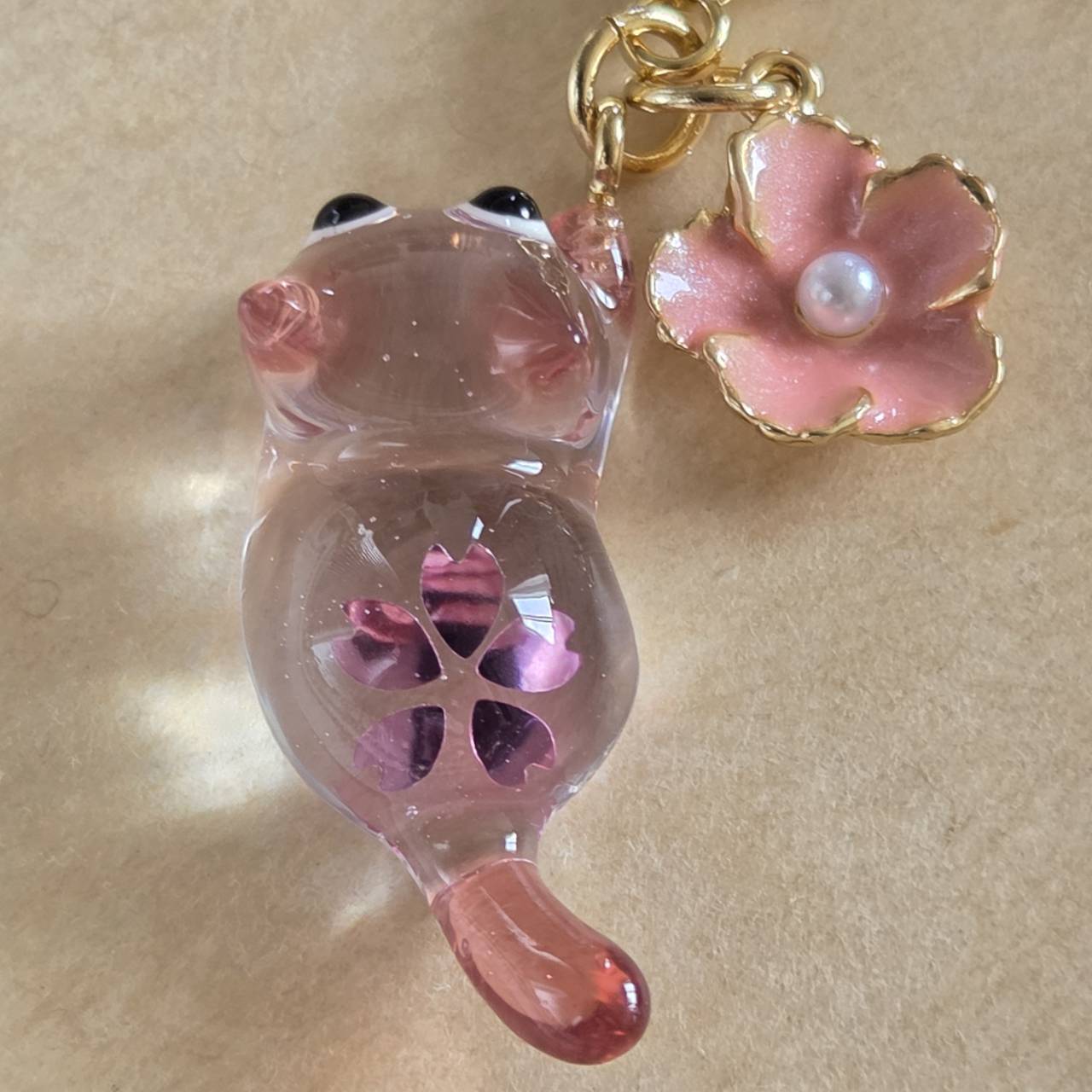 【受注販売】ピンクの桜にゃんこのチャーム❉ピンクの桜のチャーム付き