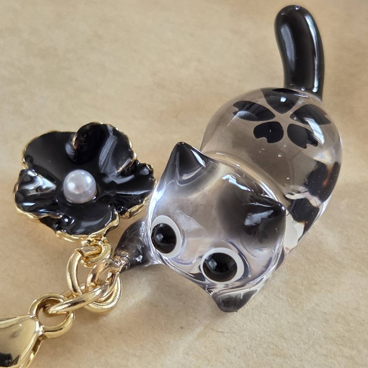 【受注販売】黒い桜にゃんこのチャーム❉黒い桜のチャーム付き