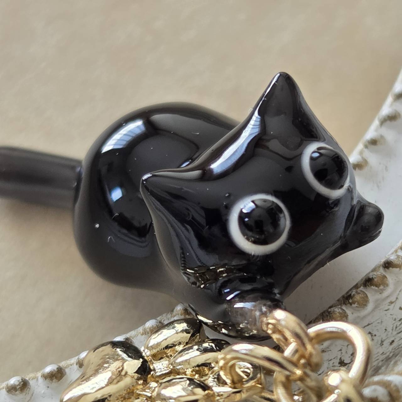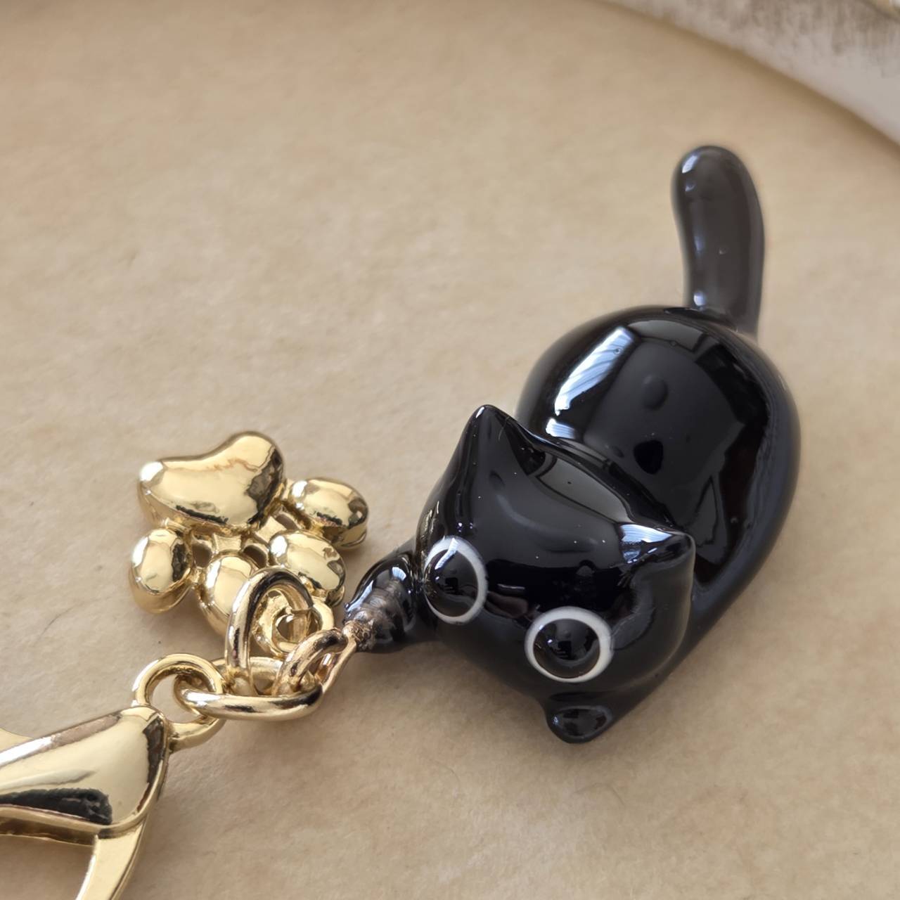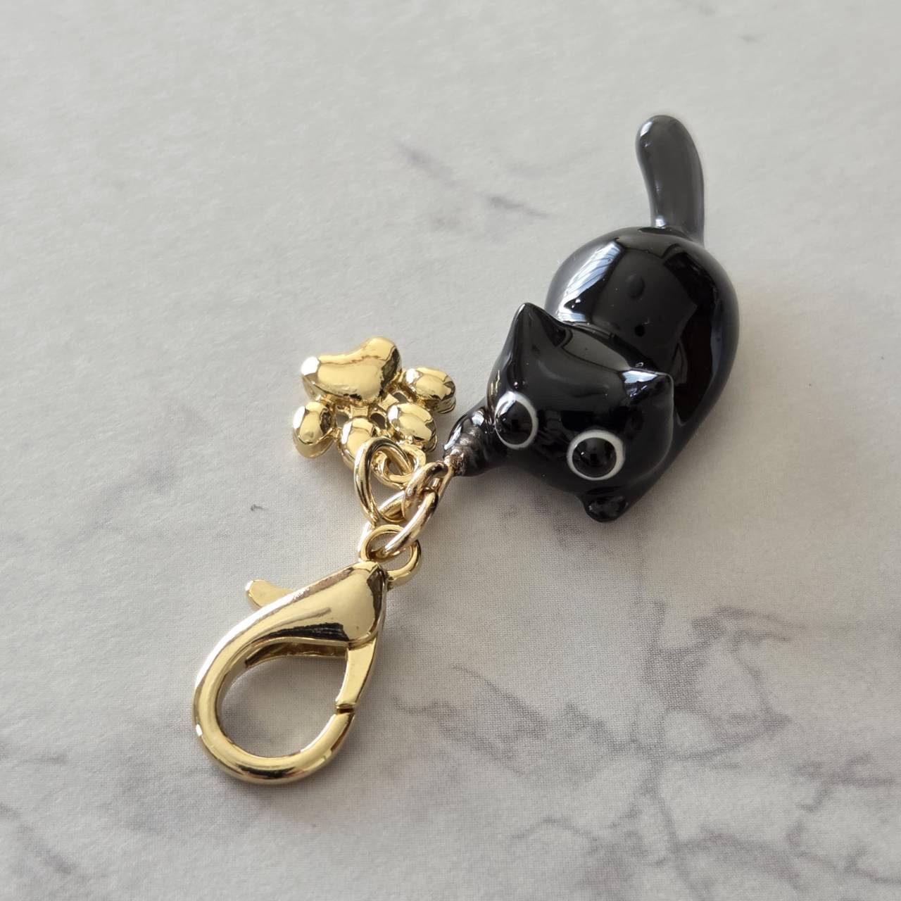 【受注販売】黒猫のチャーム(ゴールド)❉肉球のチャーム付き