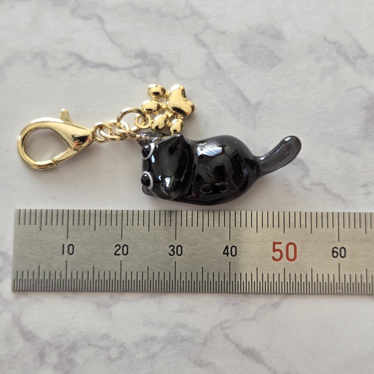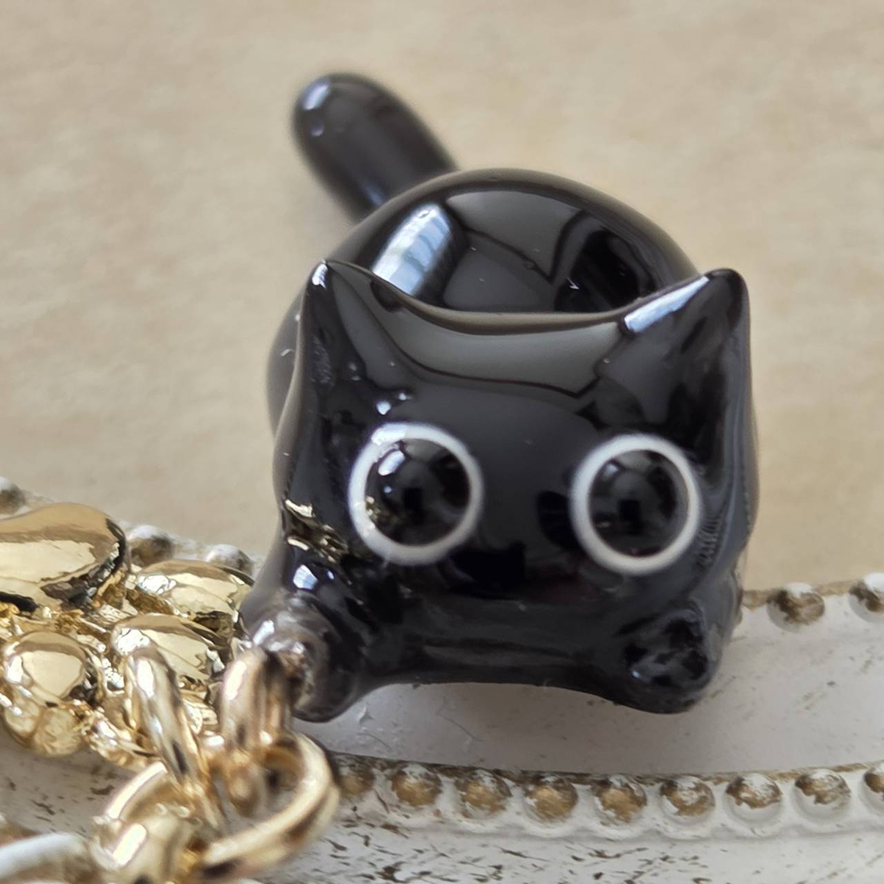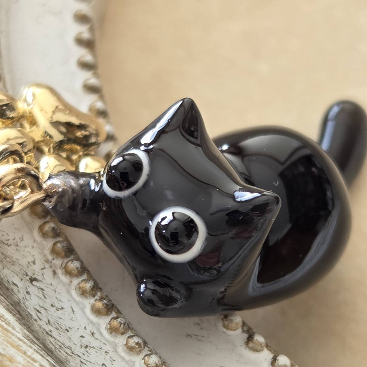 【受注販売】黒猫のチャーム(ゴールド)❉肉球のチャーム付き