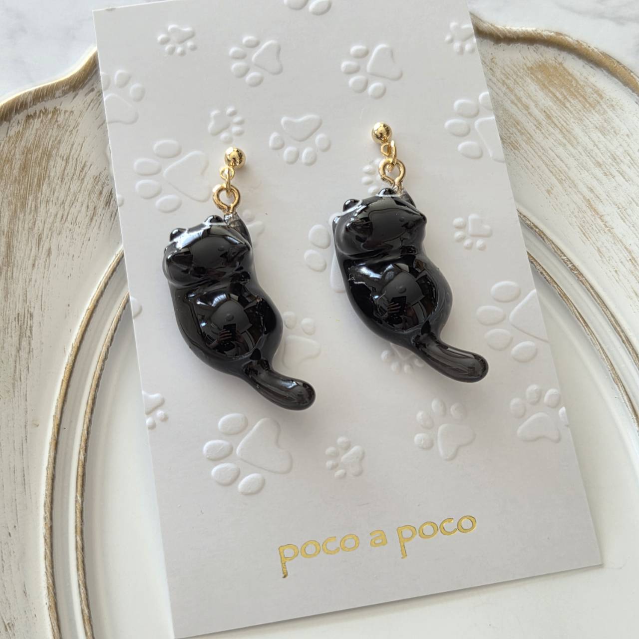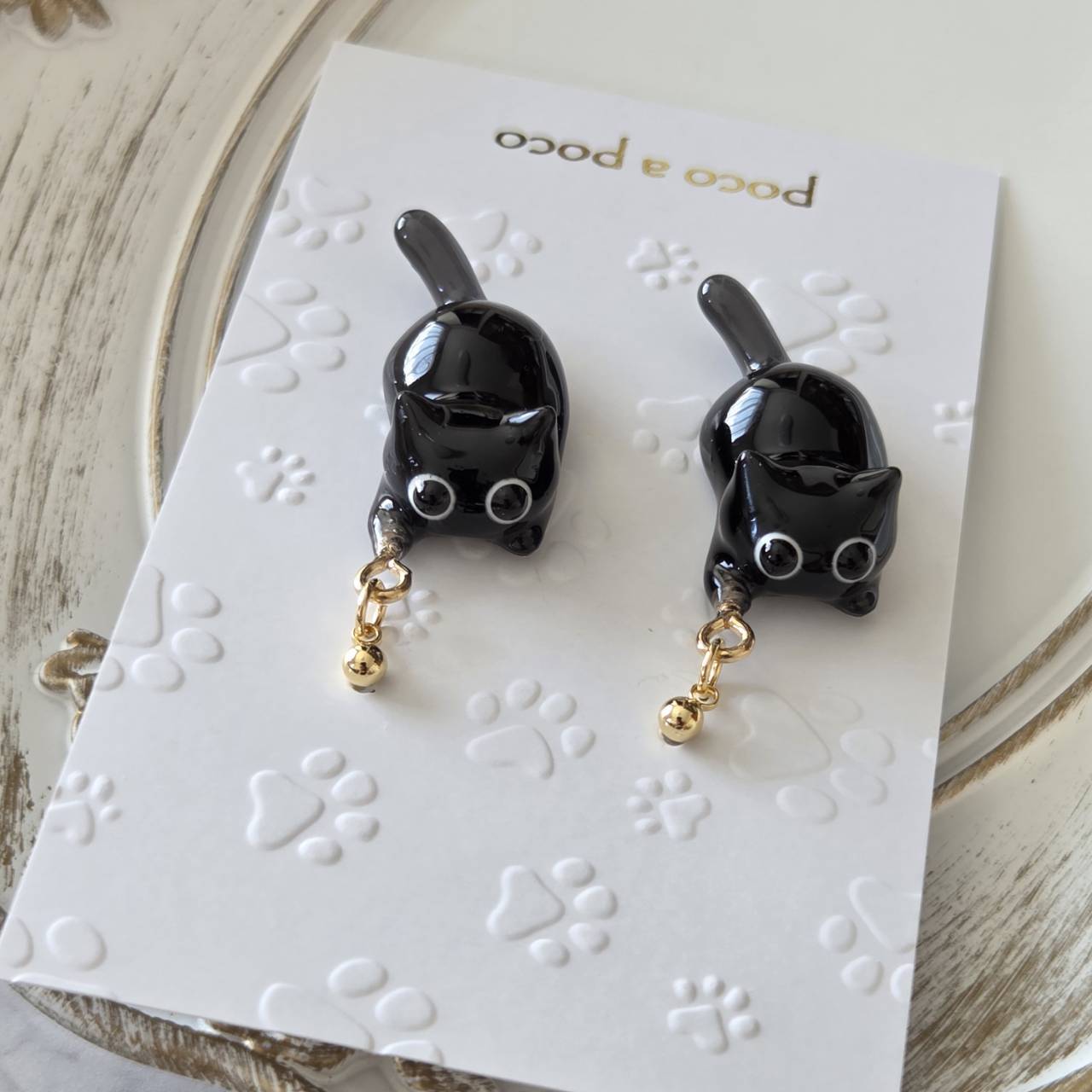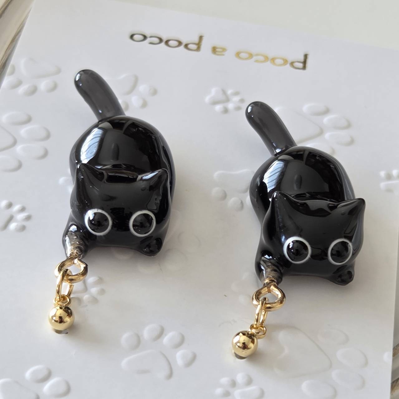 【受注販売】ピアス❉黒猫2匹(ゴールドパーツ)