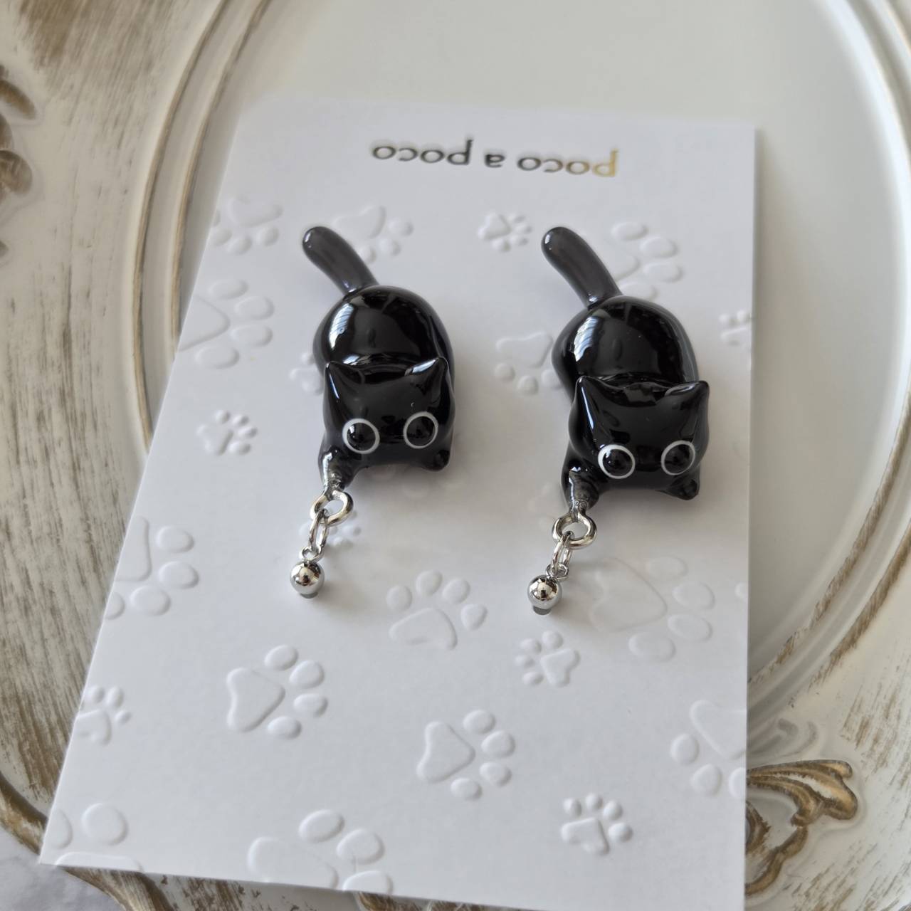 【受注販売】ピアス❉黒猫2匹(シルバーパーツ)