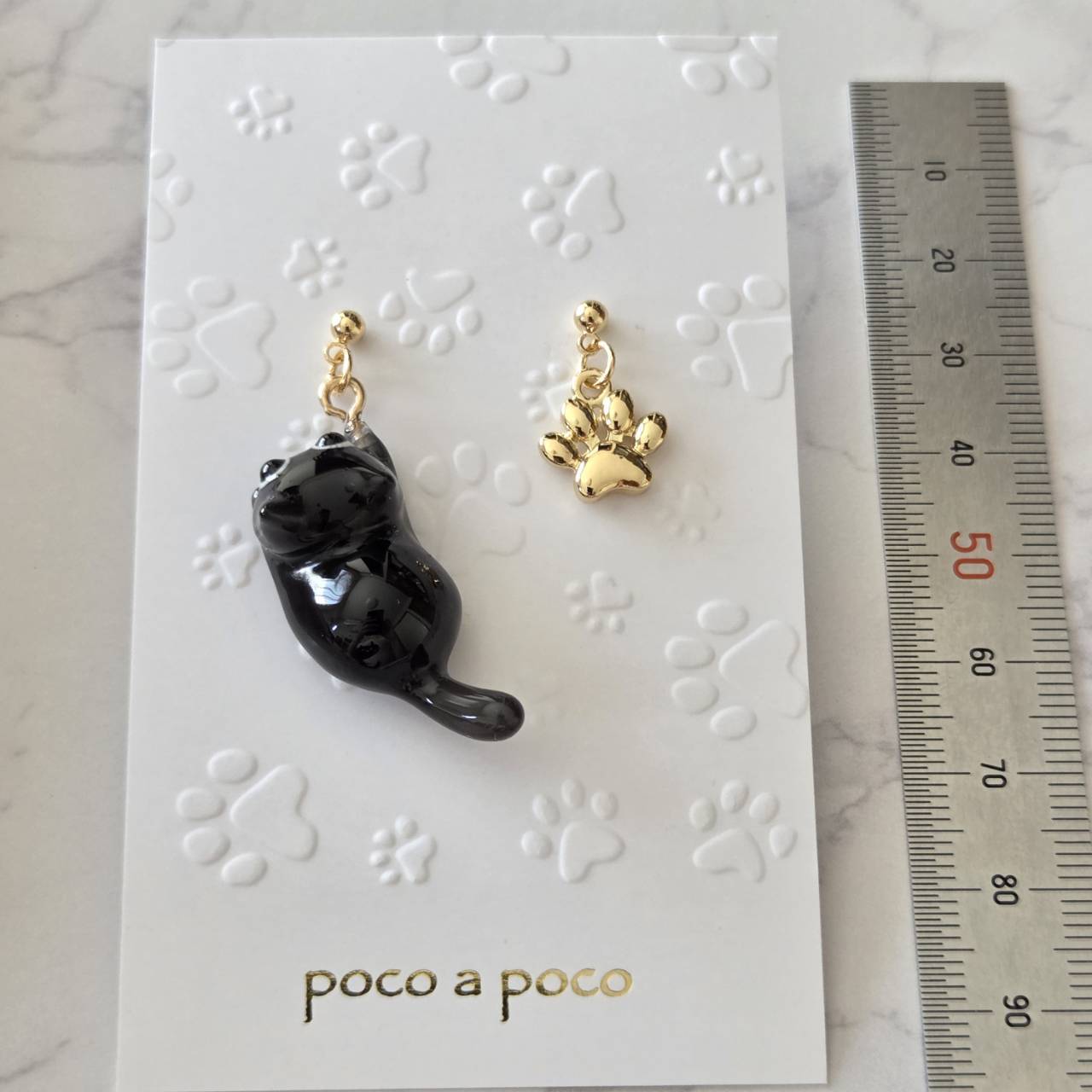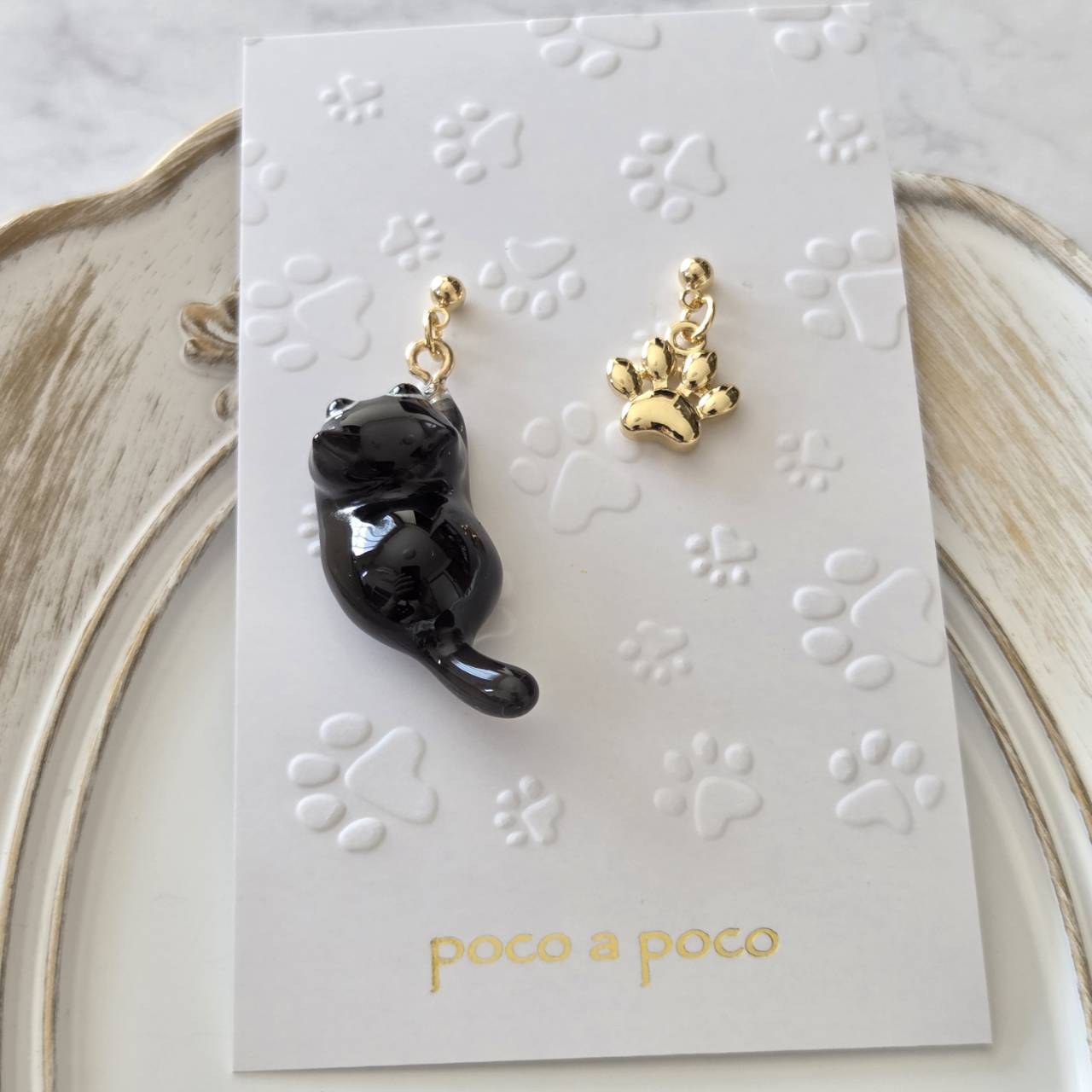 【受注販売】ピアス❉黒猫とゴールドの肉球チャーム