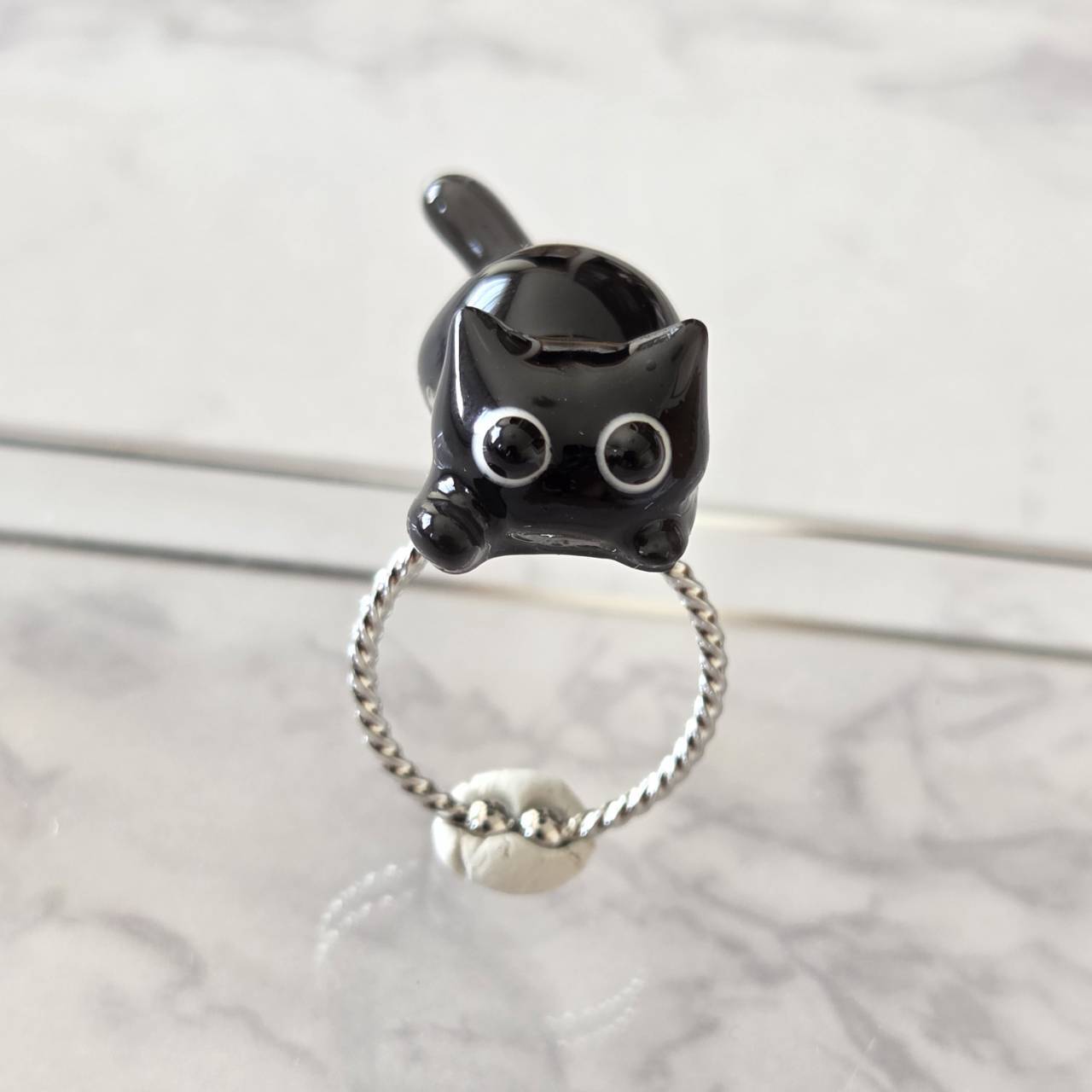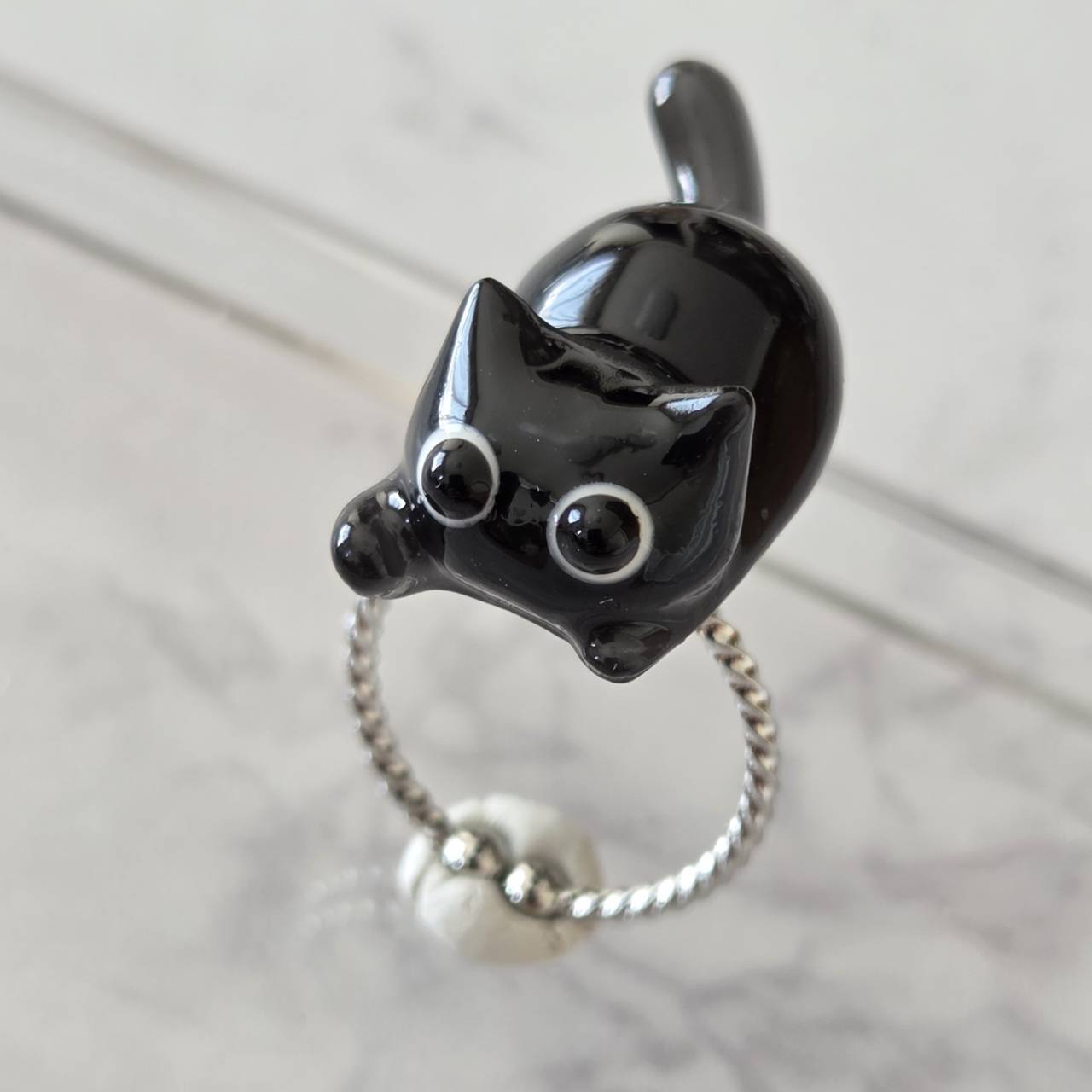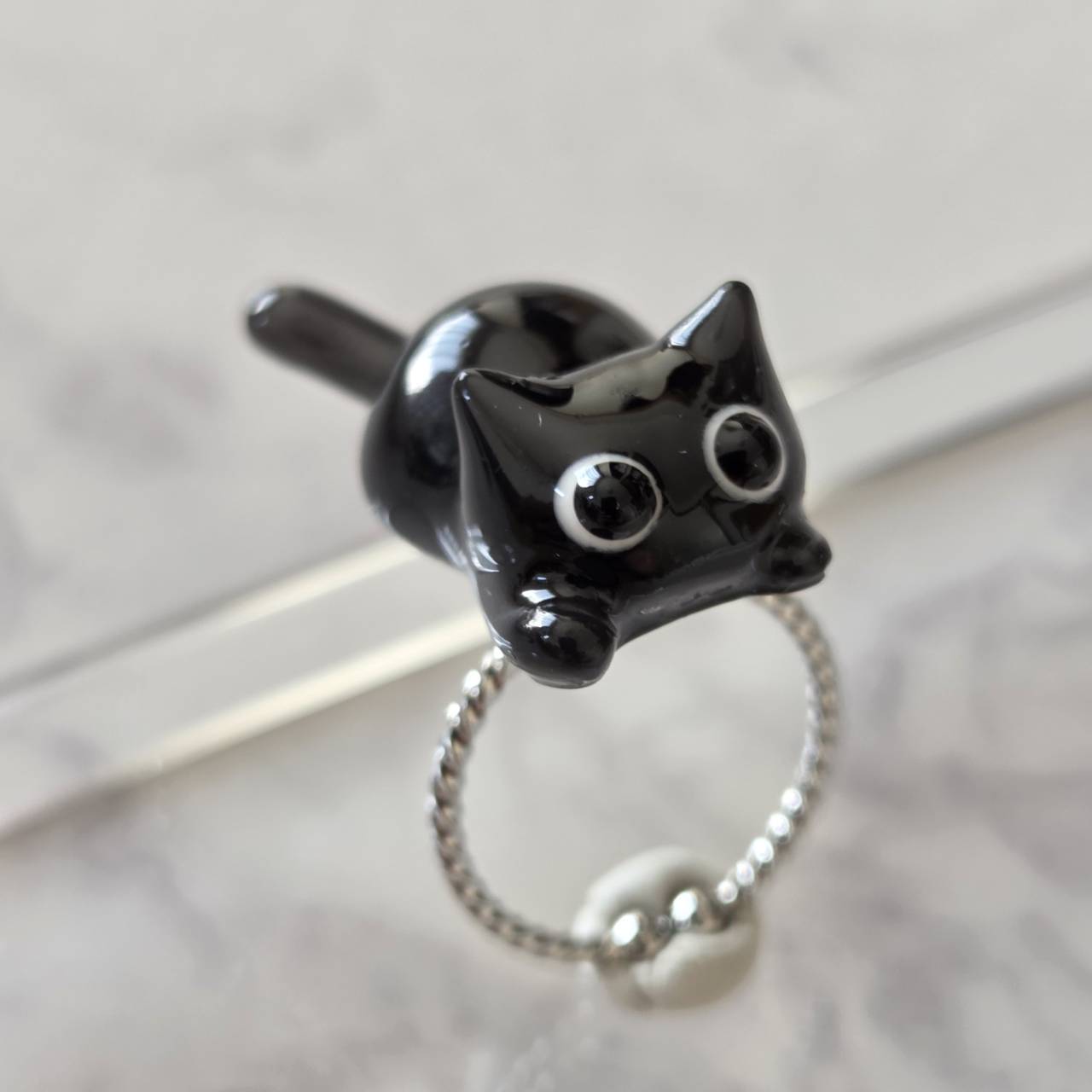 レジンで作ったねこモチーフのシルバーのリング(指輪)になります。