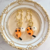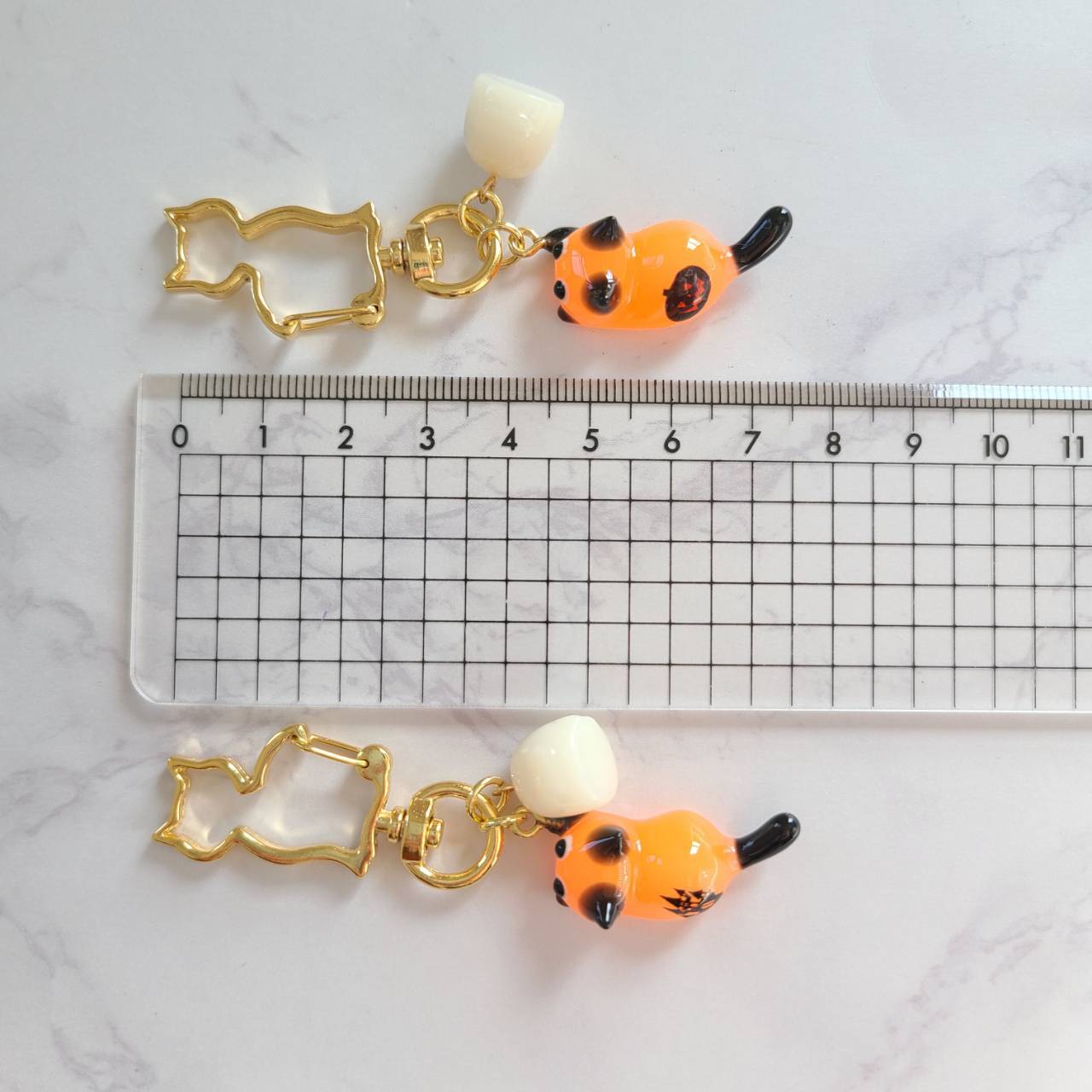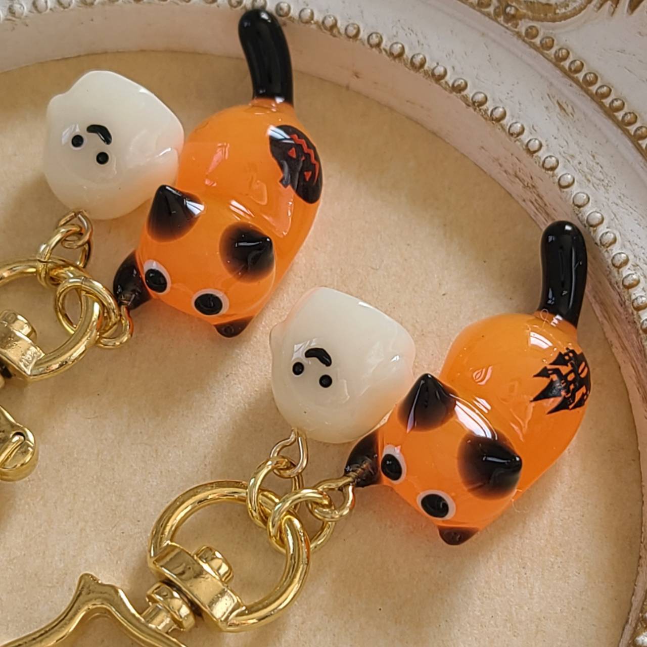 【35匹限定販売】蓄光で光る!オレンジのハロウィンにゃんこのキーホルダー❉白いオバケのチャーム付き