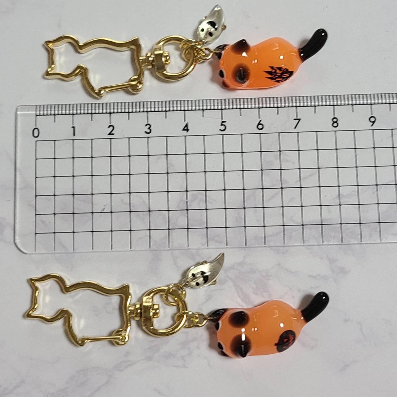 【5匹限定販売】蓄光で光る!オレンジのハロウィンにゃんこのキーホルダー❉透明なオバケのチャーム付き