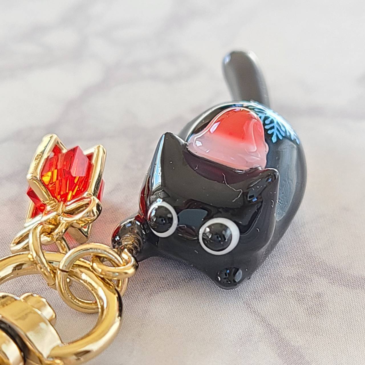 サンタの帽子を被った黒猫のキーホルダー❉赤いプレゼントBOXのチャーム付き
