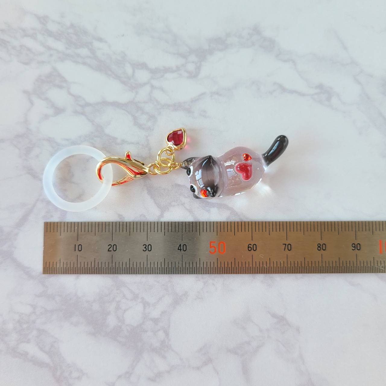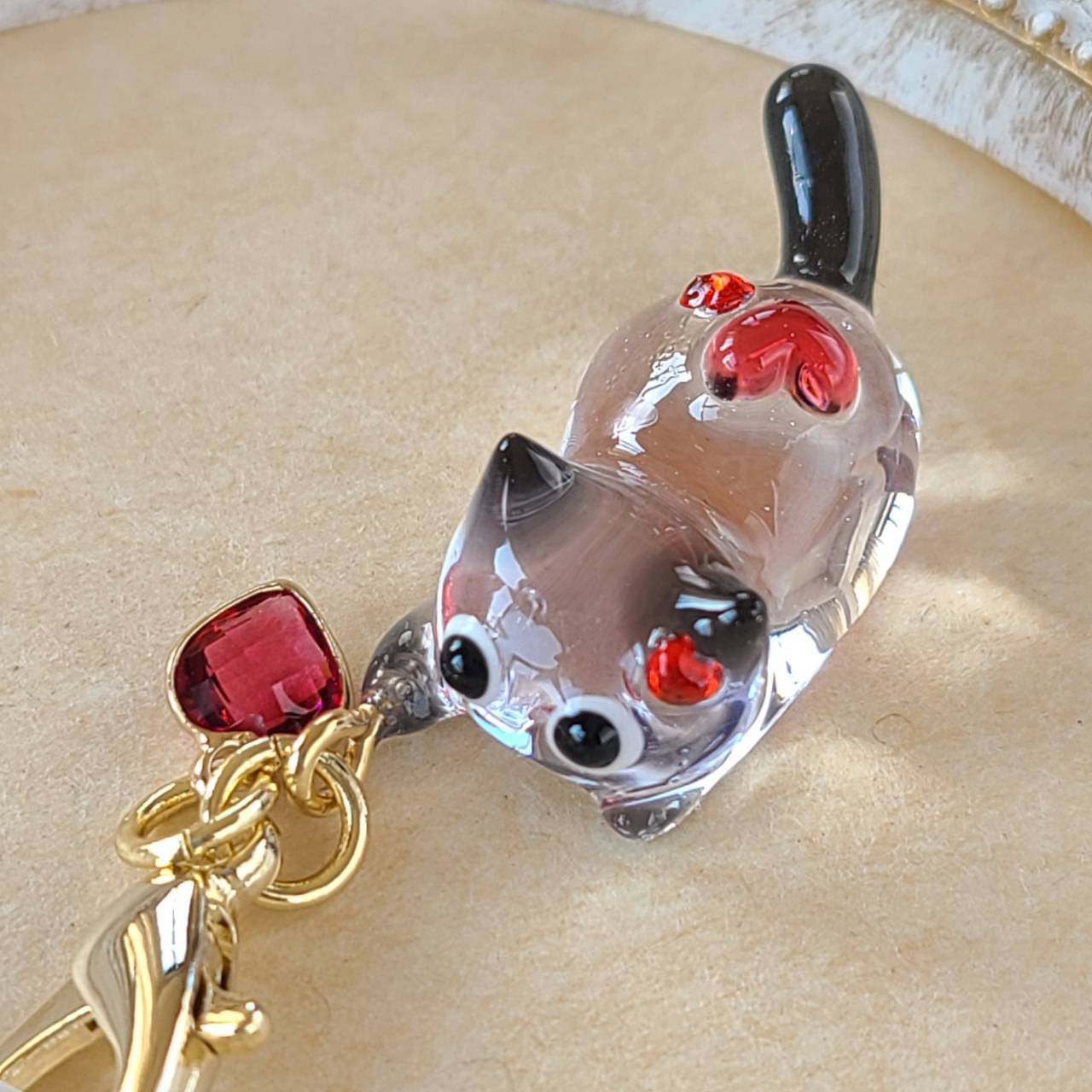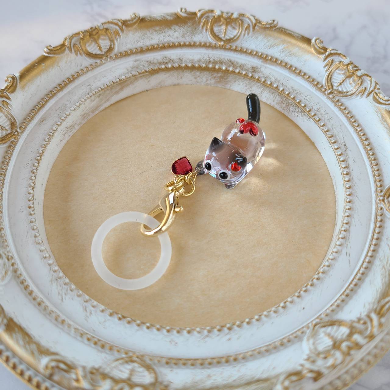 ブラックをポイントにしたクリアなネコちゃんがぷっくりした赤のハートを纏っています。
