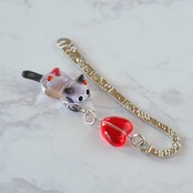 赤いハート型のガラスビーズにネコちゃんがじゃれている雰囲気をイメージしました。