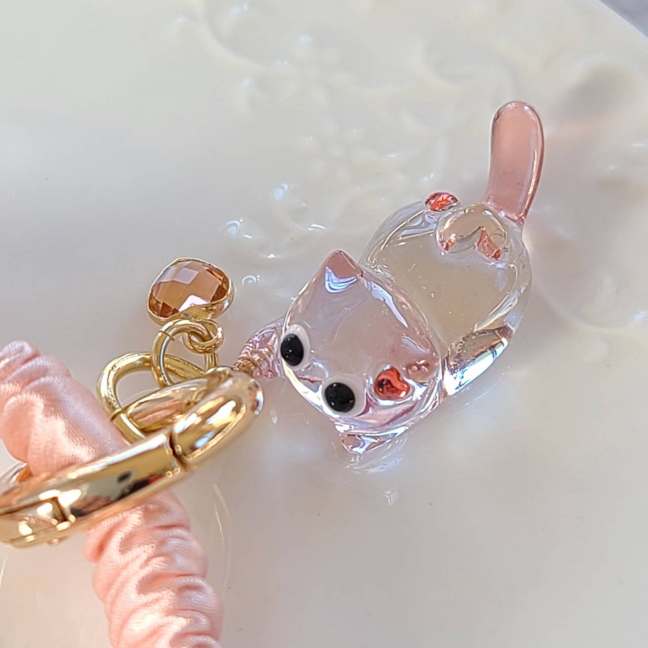 ねこちゃんとハートチャームは丸型のカラビナで取り付けてありますので、簡単に取り外すことが可能です。